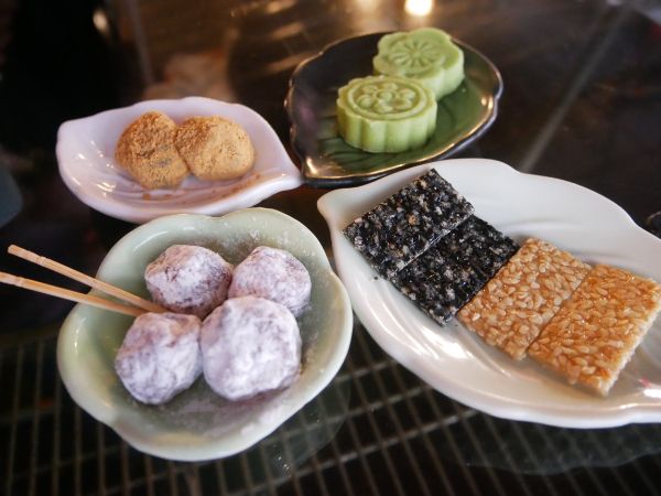 ガイドさんオススメの300元で楽しめる、小菓子+お茶セット、美味しかった梅のお菓子はお土産で購入できました