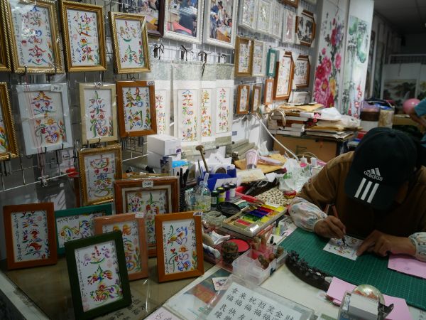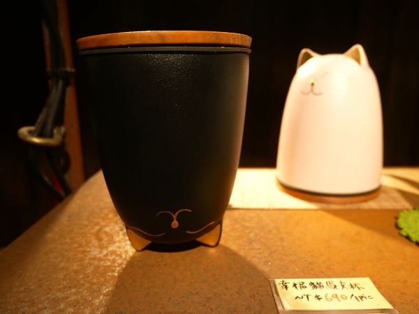 提灯に灯りが灯る頃に、お店をでて街歩きタイム、ガイドさんオススメの花文字のお店で自分用のお土産をゲット、お洒落な茶器のお店で、猫のマグカップを見つけて、がさばるのにペアでゲット・・