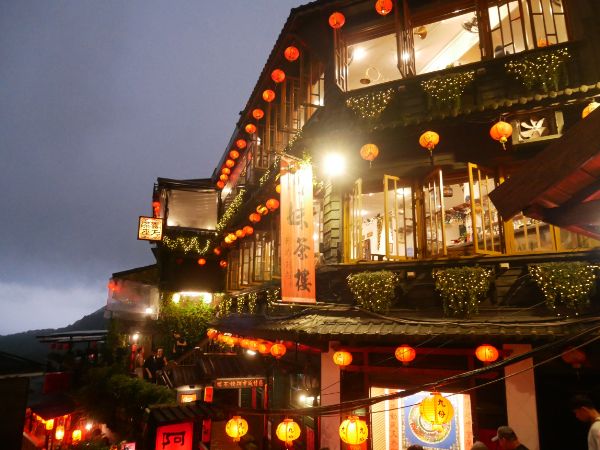と、まぁ、ほぼほぼガイドさんオススメを完全制覇といったところで、写真撮影も楽しく、お茶も1時間以上まったりと楽しんで、ピンポイントで夜の九份、大いに楽しみました。