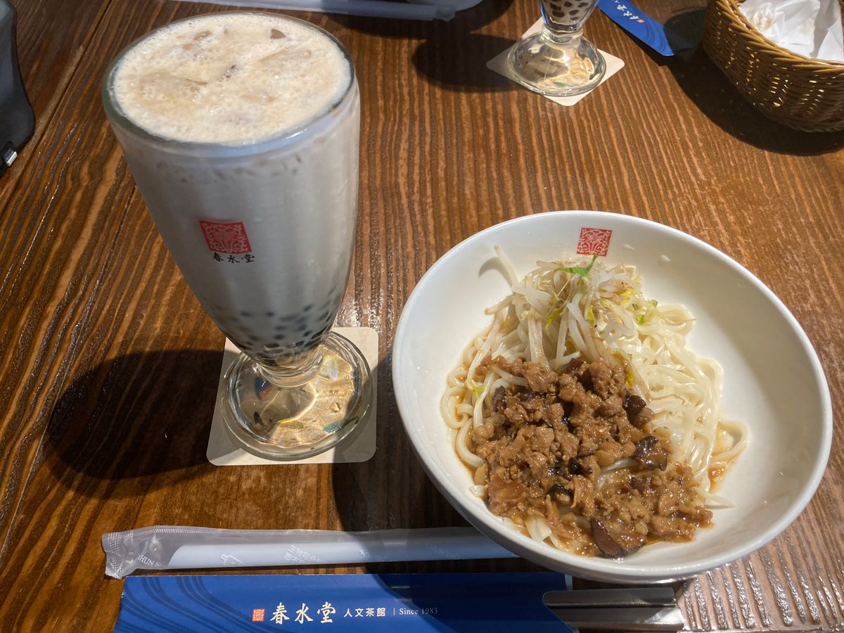 ・春水堂のランチはタピオカミルクティー、混ぜ麺、大根餅。混ぜ麺は少し期待外れかな。宮原眼科で大きなアイスを食べた後なのでお腹一杯で頑張って食べました。