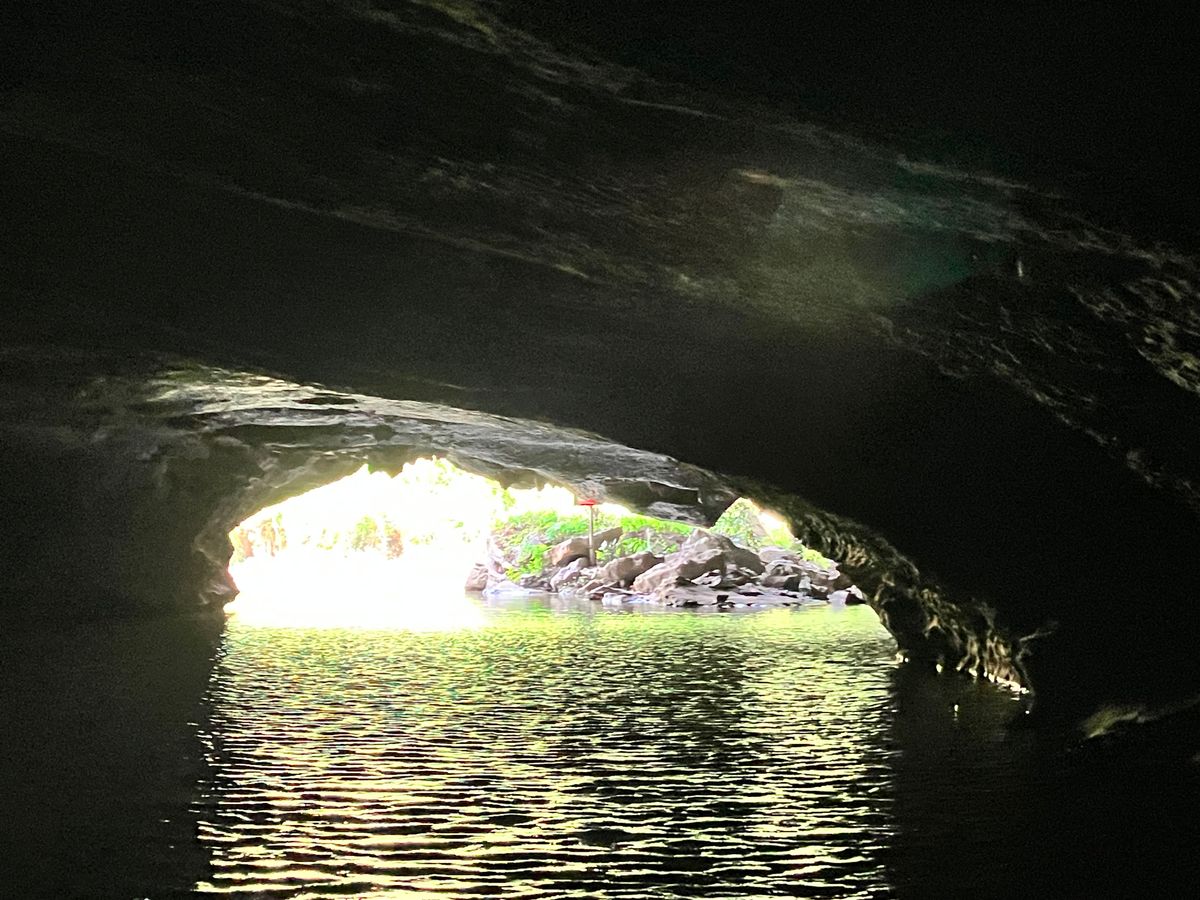 その後、世界複合遺産のティンハー洞窟につき、船頭さんが手ゴキボートを漕いで、洞窟に向かいます。思ってた以上にアドベンチャー感があり、リアルカリブの海賊のようでした。船頭さんにチップ(日本円で1人300円ほど)を払いました。