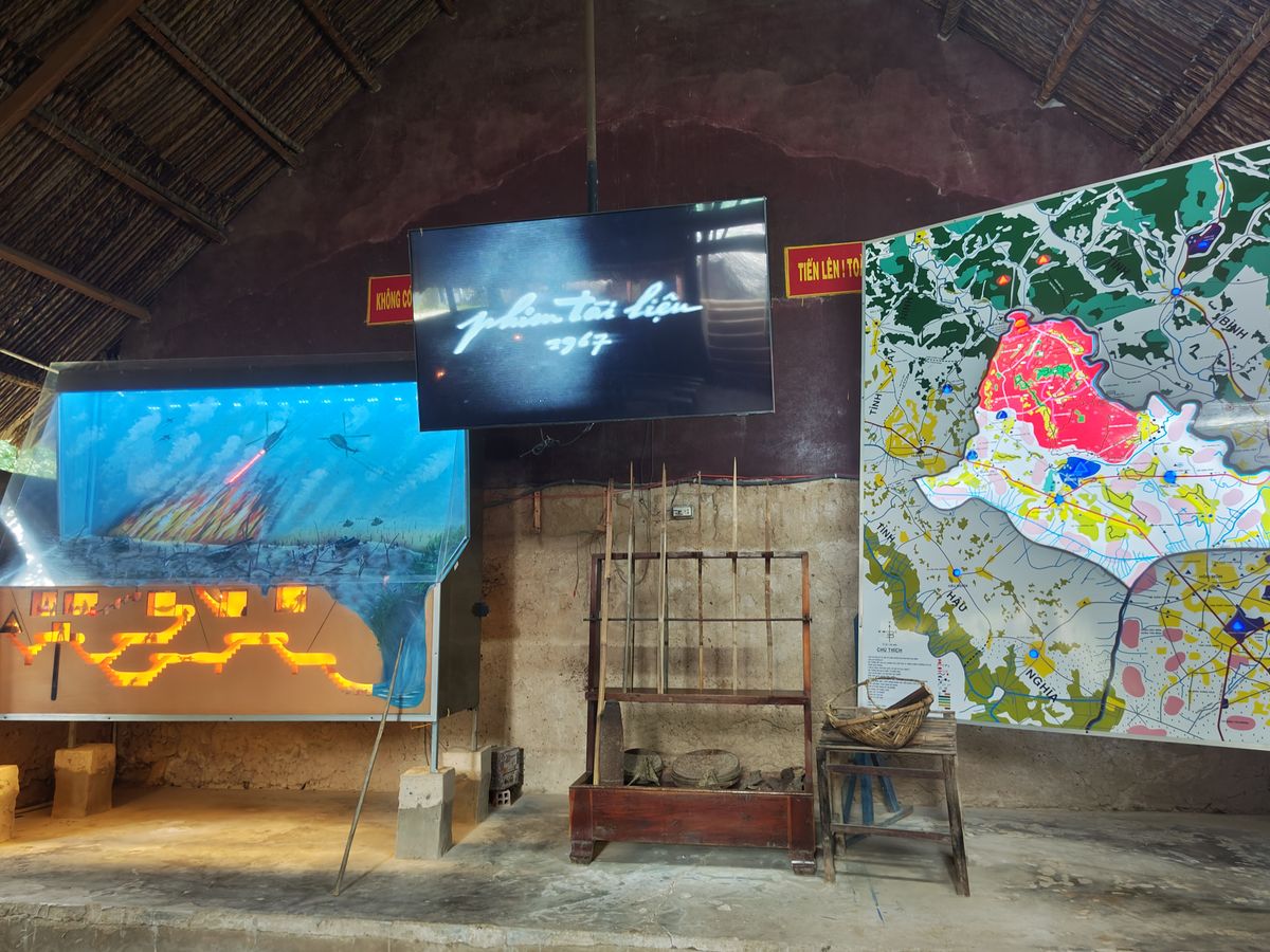 朝7時35分、1区のホテルまでピックアップのため来ていただき、バンタイプの車でクチまで移動しました。クチまで2時間弱の移動時間であり、往路ではベトナムの土産所に寄り休憩を取っていただきました。クチに到着すると、ガイドさんからクチの概要説明とトンネルを掘ったときの道具を見ながらの説明を受けました。その後、15分くらいのビデオを見て、たくさんあるトンネルや仕掛けの模型を見学しました。クチの目玉であるとても小さいトンネルは希望者が入りました。写真で見るよりもかなり小さかったです。その後、30m、50m、100mの深さのトンネル体験は挑戦しました。膝をついて這って狭いトンネルの中を移動しましたが、ツアーの案内に記載されていましたのでジーパンとスニーカーで参加しました。履きなれた靴と汚れでもいい服装で参加されることをおすすめします。欧米人やインド人の旅行者が多く、人気のツアーであることを認識しました。