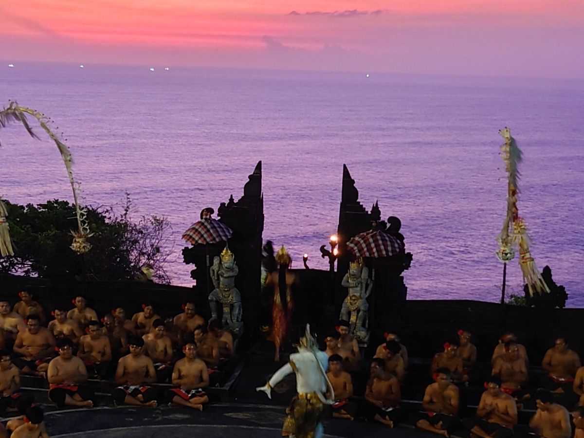 ウルワツ寺院のケチャダンスは一度見れば十分な喜劇かな。。掛け声など一本調子でやや退屈なので途中で帰る人もまばら。。