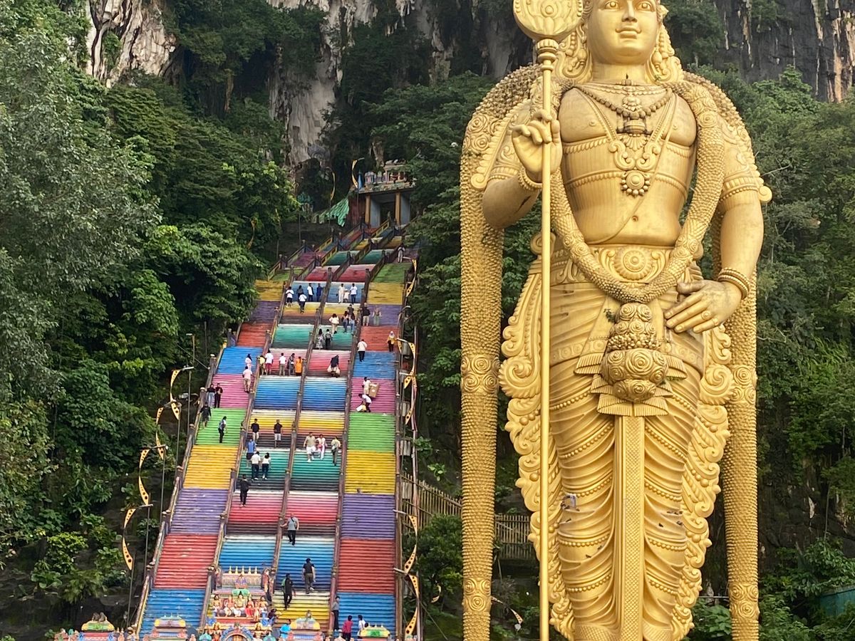 クアラルンプールの人気観光場所であるブルーモスク、ピンクモスク、バドゥ洞窟を一度に楽しめる贅沢なツアーでした。ガイドさんが熱心にイスラム教やヒンズー教の説明をしてくれます。壮大なブルーモスクと可愛い佇まいのピンクモスク、汗拭きタオル必至のバトゥ洞窟を満喫しました。ガイドさんも272段の洞窟に通じる階段を一緒に登って来られたのは驚きました!昼食の肉骨茶(バクテー)も、鍋になった物と、煮込みの2種類だ食べられて満喫できました。