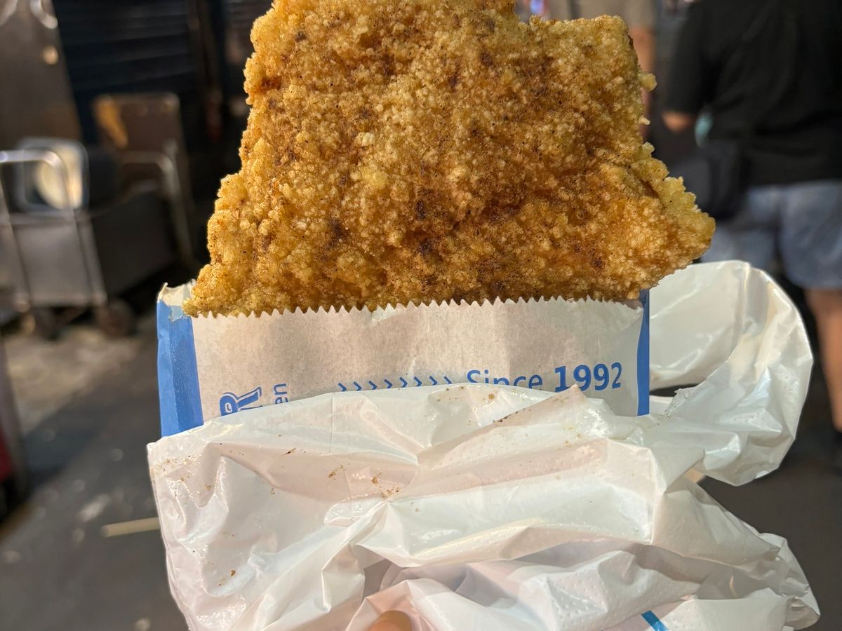 次に十分。こちらでは台湾バーガー・ピーナッツ・アイスを春巻きで包んだものを頂きました。どちらも美味しかったです。