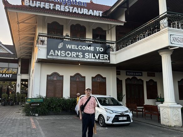 日本語ガイド1名、運転手1名が予約した朝10時にホテルに迎えに来た。初めに1日の行動計画を立てた。行きたいところを言ったところ、まず午前中に市内の王宮(2か所)を見て、それからプランバナン寺院に向かうことになった。その途中でバティックの工場、銀細工の工場を見学。工場で製品を購入することでき、よいお土産になった。また、ジャコネココーヒーの直販をしているお店があり、試飲してからこれも買った。プランバナン寺院では、ジャワの歴史を交えて遺跡の説明を受けた。ボロブドゥール遺跡はさらに遠かった。車の中や歩きながら、インドネシアやジョグジャカルタの歴史や文化についていろいろ話してくれ、こちらからも質問した。最後は市内に戻り、Sonobudoyoでラーマーヤナの舞踏劇を見た。劇は7時からだったので、券を買うところまでお世話をしてくれて、ガイドの契約は8時までだったので、そこでガイドさんたちとは別れて、あとは一人で劇を見て、タクシーでホテルまで帰った。