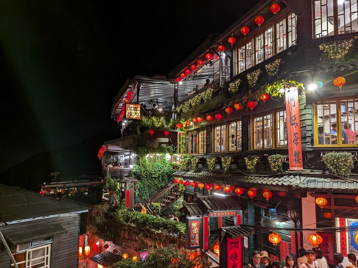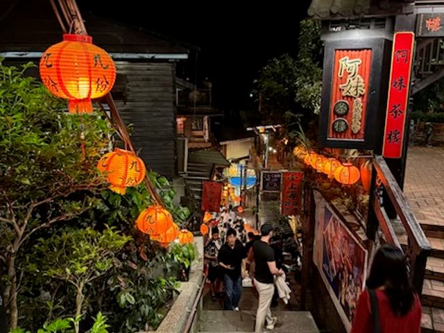 九份散策についても、ガイドさんがうまくサポートしてくださって。目当ての「阿妹茶楼」にもほぼ待つことなく入ることができ、湾の夜景と赤ちょうちん、それぞれの夜の魅力に溢れた街(坂)並みでした。