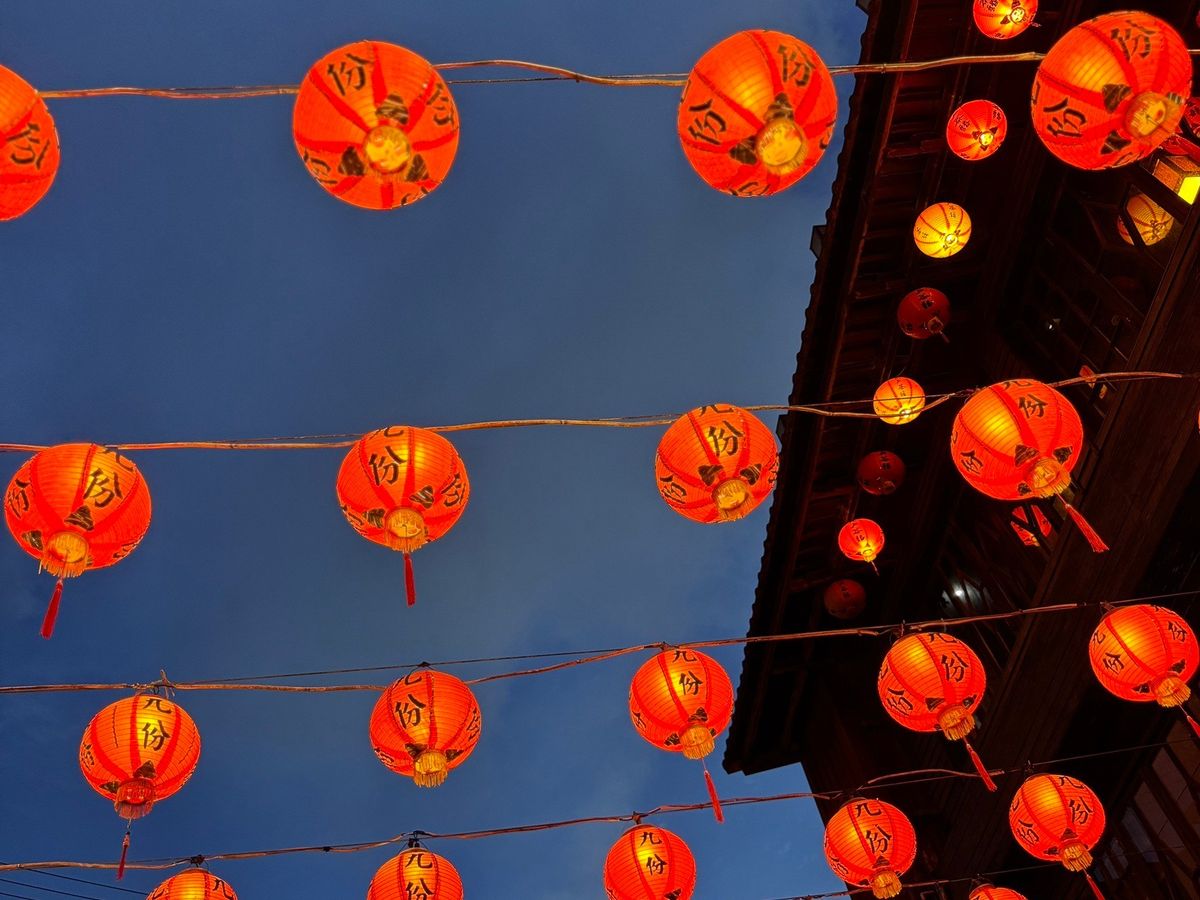 次にまた階段を登り100%パイナップルケーキの維格餅家へ。試食をしたら甘味少く美味しかったので、お土産としてゲット。色々お店を覗いている内に日も落ちて提灯ライトアップ。写真に収め3時間の滞在終了。