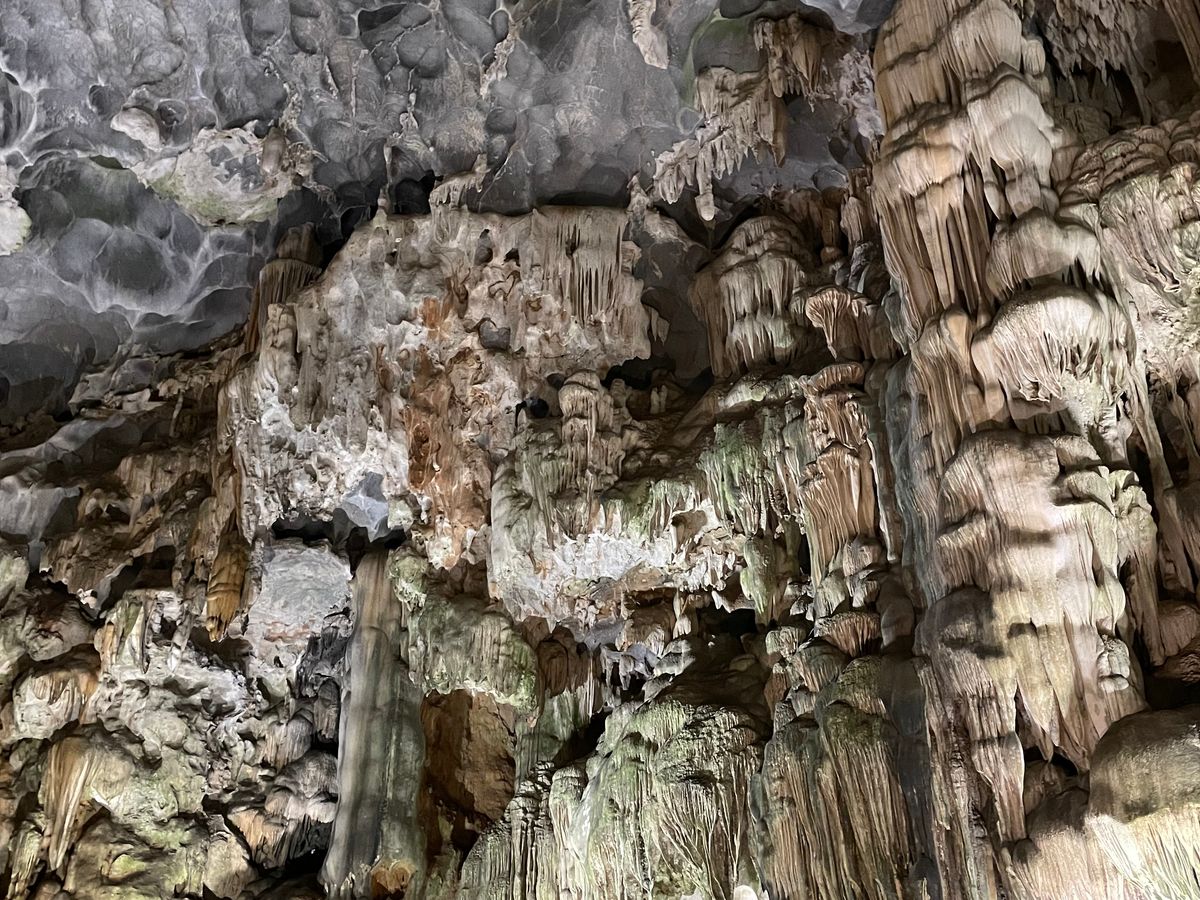 二回目のハロン湾でした。天気は曇り時々雨で正直一回目には劣るだろうと思ってましたが、ガイドさんの話の面白さ人柄の良さ、船の女性も親切、笑顔で押し売りもなく楽しいツアーにしてくれました!そして曇りのハロン湾もいいものでしたし、差し込む光の関係で洞窟の見え方も違いこれもまた良かったです!また帰りのトレインストリートも素敵でした!