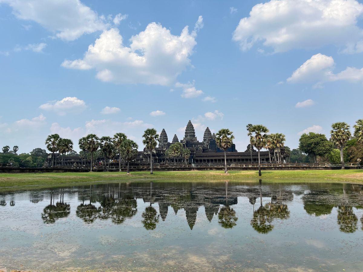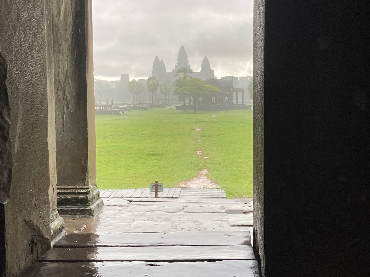 雨季のシーズンでサンセットは残念ながら見ることはできませんでしたが、アンコールワット回廊内で雨宿りは思い出に残ります。雨が上がった後の緑は、綺麗ですよ。