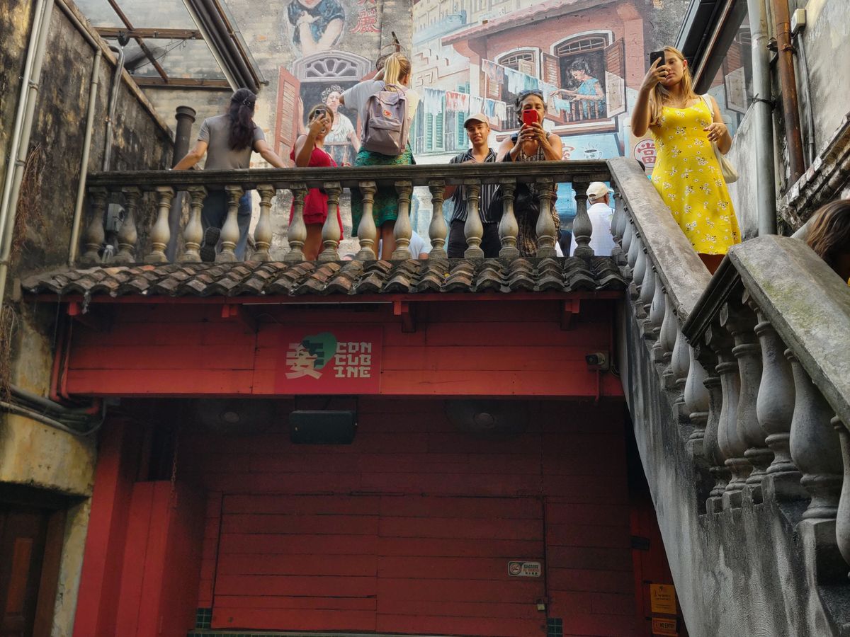 まずは、ブキッ・ビンタン駅からモノレールに乗り(トークン プラスチックコインは買ってもらえ渡されます)でマハラジャレラ駅に行き、ムルデカ118ビルをバックに写真を撮ってもらい、チャイナタウンのクワイチャイフォン(鬼仔巷)を散策、床屋さんの壁画をバックに散髪してもらっているように見える写真をパチリ。