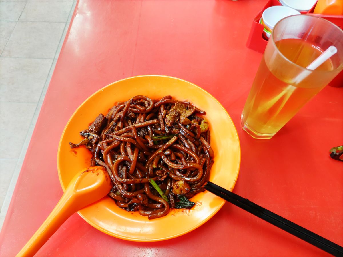 その後、チキンライスの店に行くと言われましたが、ランチに食べたので結構と言うと、ヌードルの店にしますとスリ・マハ・マリアマン寺院前で写真撮影後、近くのRestoran Kiew Yee Baruでホッケン・ミー(福建麺)をいただく。日本人好みの焼きそばで美味しい。