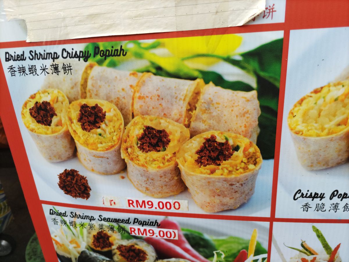 それから、市場を散策してマレーシアの果物を食べさせてもらい、もうお腹いっぱいですと伝えると、ポピアというマレーシアの生春巻を土産にしてもらい、パサール・セニ駅からブキッ・ビンタン駅に戻り、終了解散となりました。約2時間の楽しいツアーでした。ホテルに帰ってから、ポピアを頂きました。なかなかおいしかったです。
