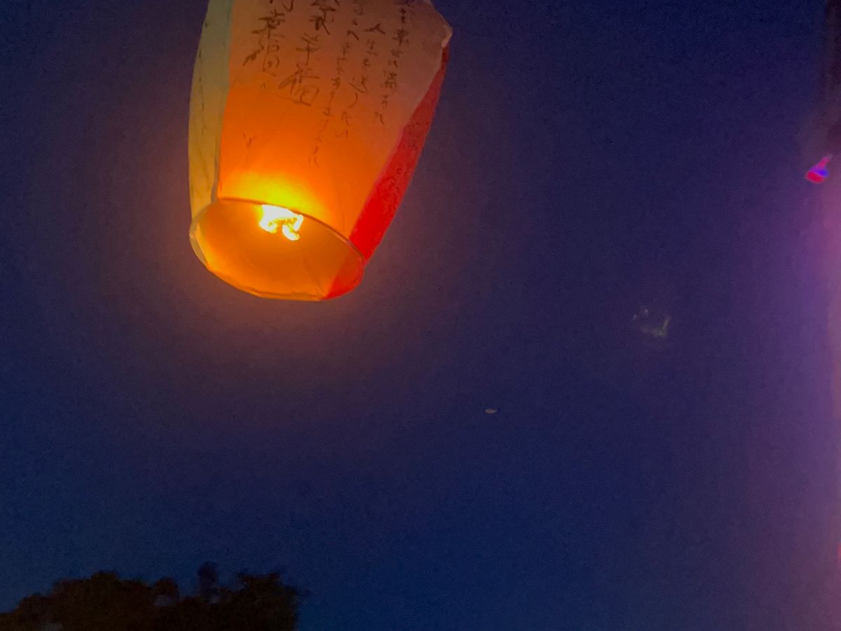 夜空へゆらゆら揺れながら登っていくランタン。願いや祈り、そのまま、天の神様へ届け、そう願った夜でした。