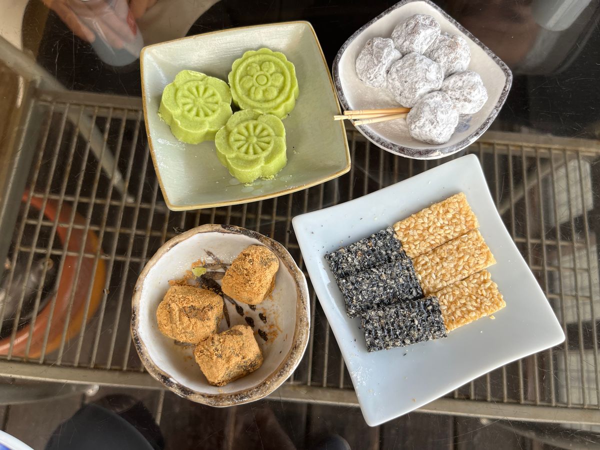 九份に着いてからは、いわゆるメインストリートではない道を案内していただけました。地元の人が利用するような静かな道で、有名な茶館まで高低差がない平坦な道を混雑することなくのんびり歩いて行けました。阿妹茶屋でお茶をしたいと希望したところ、お店まで案内していただけて、開店してすぐの時間だったのでテラス席の一番良い席でのんびりお茶をすることが出来ました。