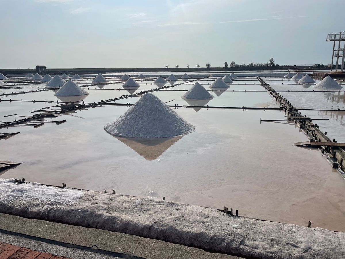 塩田の景色は、円錐型に盛られた塩の山がたくさんで、インスタ映えするような風景でした。