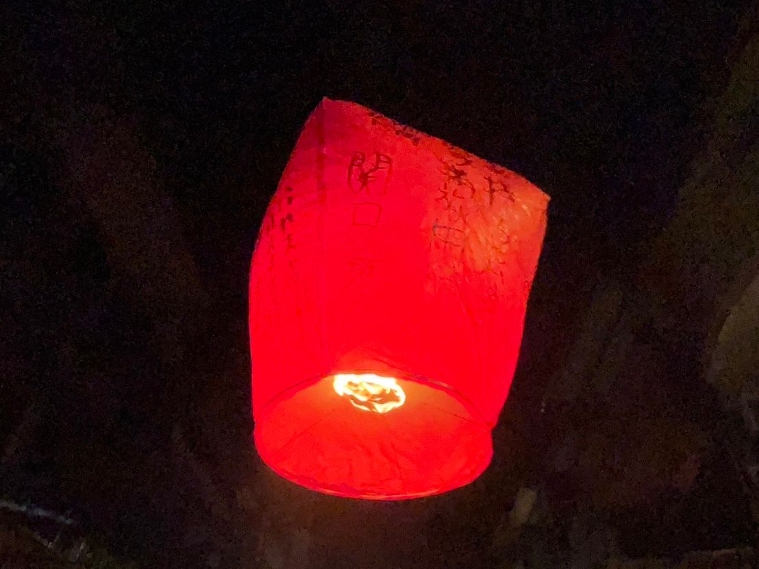十分到着するまで雷と豪雨で大荒れでしたが天灯上げの願い事を書き上げていざ上げる時に雨が止みました。