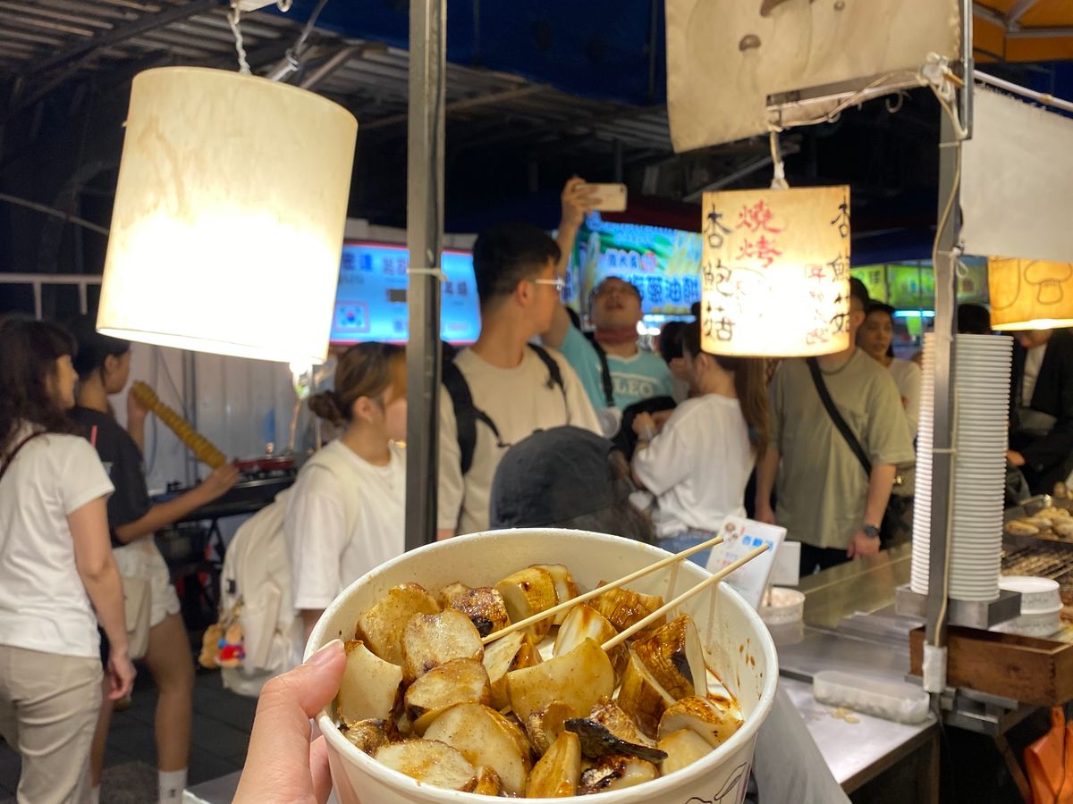 最後に逢甲夜市で降ろしてもらいましたが、これがとてもよかったです!前日に行った台北の饒河夜市は、まっすぐ歩けないくらい混んでいたのですが、逢甲夜市はとても広いので歩きやすく、お店もたくさんありました。また、ガイドさんがきれいなトイレを予め教えてくれたので助かりました。帰りはタクシーで高鉄台中駅まで行きましたが、20分くらいでした。