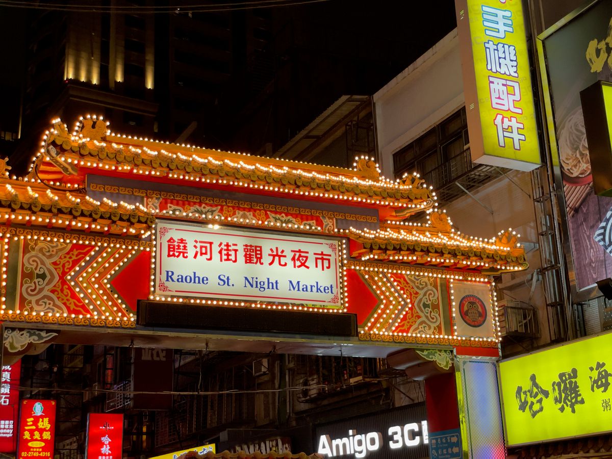 次に向かったのは、饒河夜市。夜市の賑やかな雰囲気に心躍りながら、さまざまな屋台で台湾の伝統料理や新しいフレーバーを堪能しました。特に思い出に残っているのは、素材をそのまま生かした料理、スイカやレモンを絞っただけのジュースや、アンガスビーフを焼いて塩胡椒して炙っただけのサイコロステーキなど、なんてことない料理でも現地の雰囲気が最高のスパイスとなり、そこでしか味わえないひと時を満喫しました。屋台の喧騒に疲れてきたら、ちょっと路地裏に入り、人通りの少ない川辺に出て台北のレインボーブリッジを眺めながら散策したりと、自分のペースで過ごすことが出来ました。