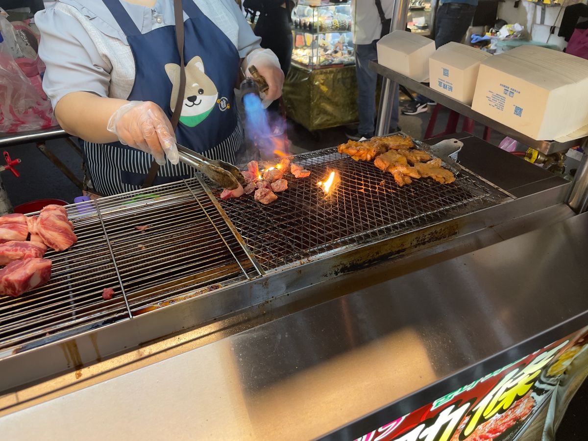 夜市 賑わいにびっくり。顔ほどの大きさのフライドチキンをシェア