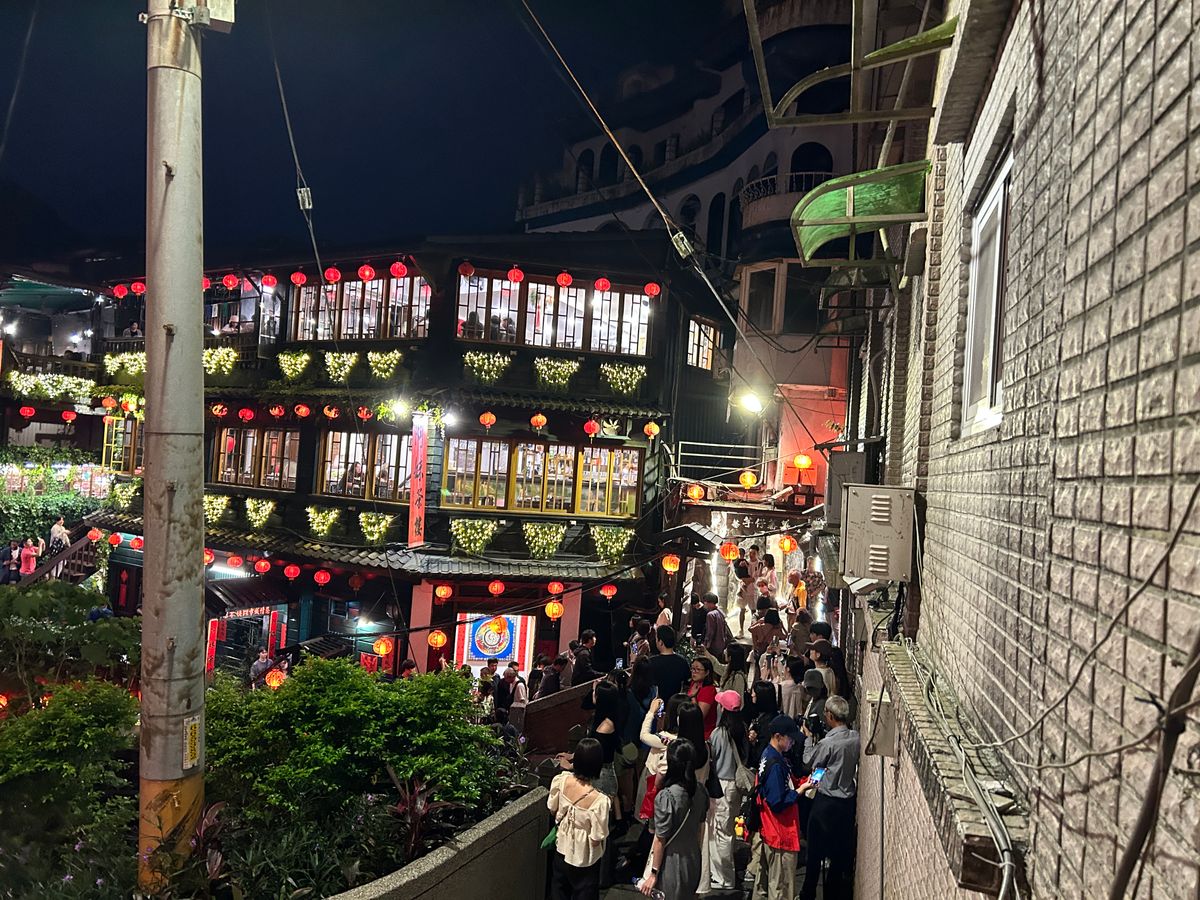 時期的に気温も落ち着いて、心地よい風を感じながら、お茶屋さんテラス席で妻と二人でのんびりお茶をのみつつ、夜の九份を楽しむ。。。