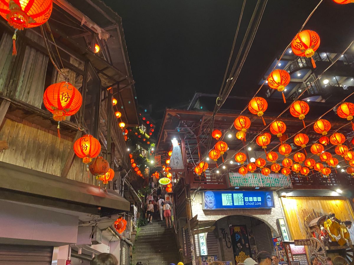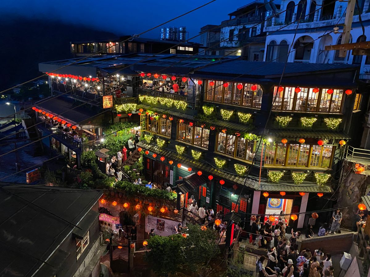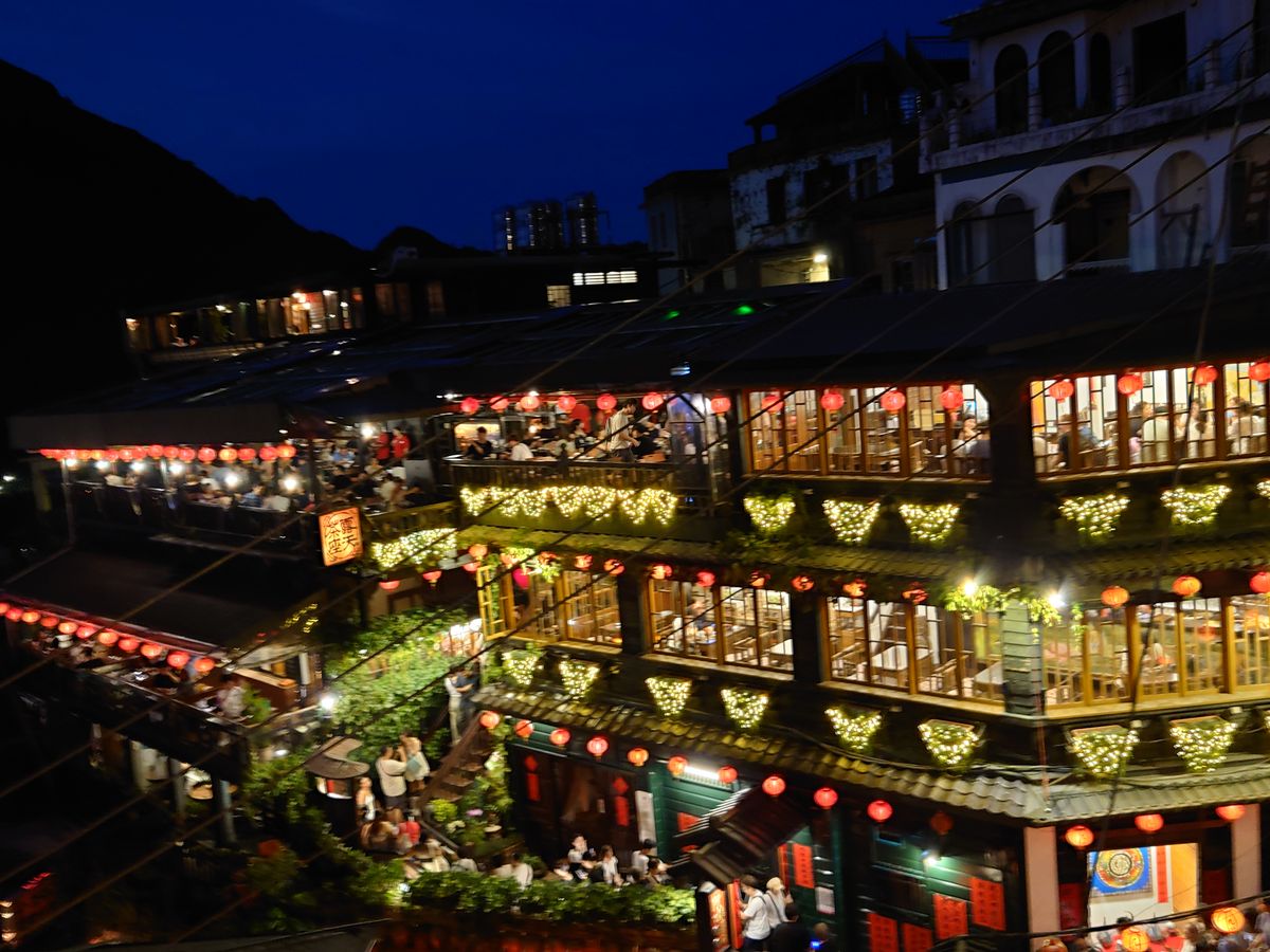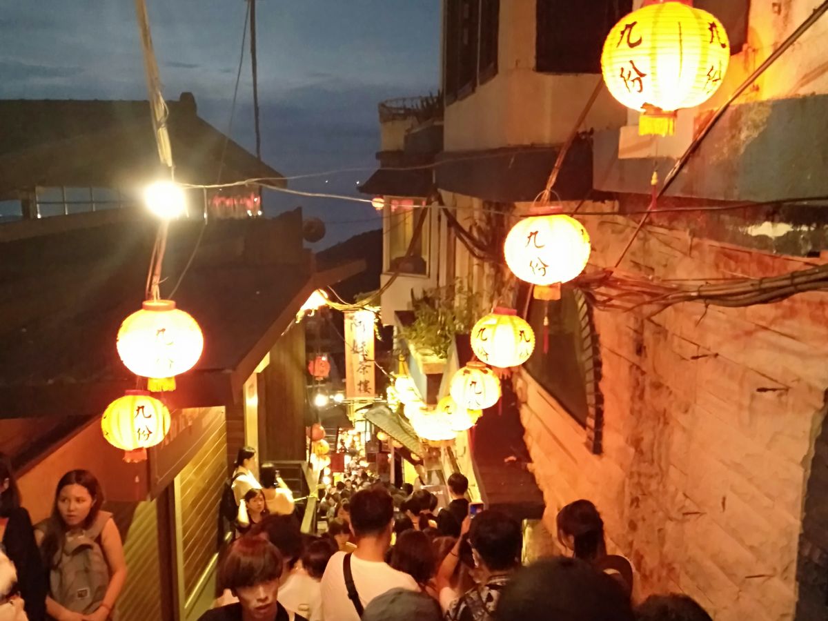 九份ではあの夜景が見える海悦楼のベランダからお茶を飲みながら赤提灯の夜景を満喫しました。予約して大正解です。こちらのツアーでは到着が17:55, 海悦楼の予約が18:00と厳しかったですが少し遅れで入ることができました。予約はマストです。芋スイーツを阿柑姨芋でいただきました。美味しかったです。残念ながらすみれスープは食べれませんでした。今度は九份で3時間取れるツアーで行きたいと思います。
