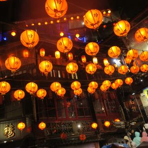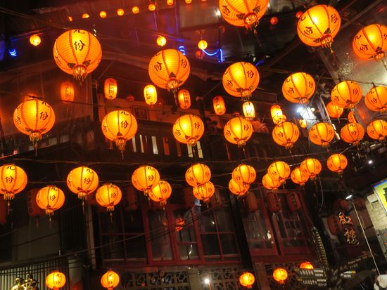 九份へ午後から台北駅を発ち日暮れから夜の風景を見ることができました。残念ながら雨でしたが、赤いランタンが綺麗でした。台湾のお茶をいただき、パイナップルケーキを買ったあと、古窓レストランで美味しい夕食を味わうことができました。ガイドの楊さんの喋りが最高で、行き帰りの1時間ずつのバスの乗車中退屈することがありませんでした。