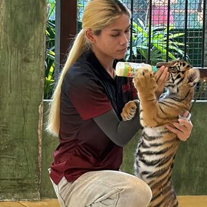 年齢によって、触れ合えるタイガーの大きさが変わります