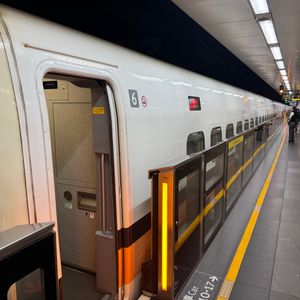 年末の18時半頃の駅は乗車待ちの人達で相当混雑していましたが、優先乗車出来るので殆ど並ばずに乗車でき、ガイドさんのエスコートで進行方向右側座席にも座ることができました。