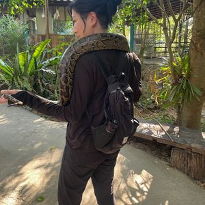 Then we moved to the My Tho pier and crossed the Mekong River on a private boat to the sightseeing island of Thoi Son. There, we bought natural honey and coconut handicrafts, had a reticulated python draped around our necks, and finally boarded a sampan from one of the tributaries that took us back out onto the Mekong River.
