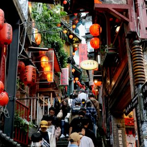 今回初めて九份を訪れました。集合場所(台北駅)からバスで約50分でしたが、車中で日本語堪能なガイドさんからのレクチャーを受け、少し予備情報を得ることができました。海を望む景色、真っ直ぐに進む石段、これにクロスして曲がりくねりながら延びる商店街、はどこも風情がありました。