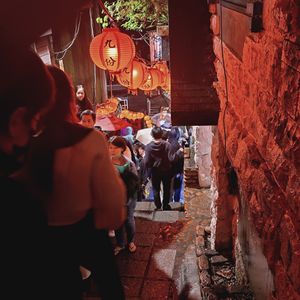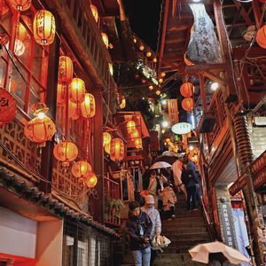 提灯は雨で幻想的に見えました。案内してくださったパイナップルケーキのお店は伝統製法で作ったいるらしく、試食したら美味しかったのでお土産に購入しました。