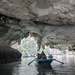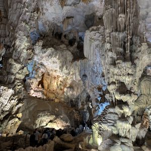 ハノイのホテルに迎えにきていただき、ハロン湾に向かいました。乗船後すぐに昼食。 ハロン湾で捕れるカニやイカなどを食しました。そして、いよいよティエンクン鍾乳洞へ。手漕ぎのボートの漕ぎ手のおじさんは、サービス精神旺盛でした。鍾乳洞では幻想的な世界を体験。絵画を観ているような美しさでした。鍾乳洞の景色を人間や動物にたとえてくれて楽しかったです。帰りは、旧市街で降ろしていただき、ベトナム料理を美味しく食べることができました。初めてのハロン湾を満喫しました。