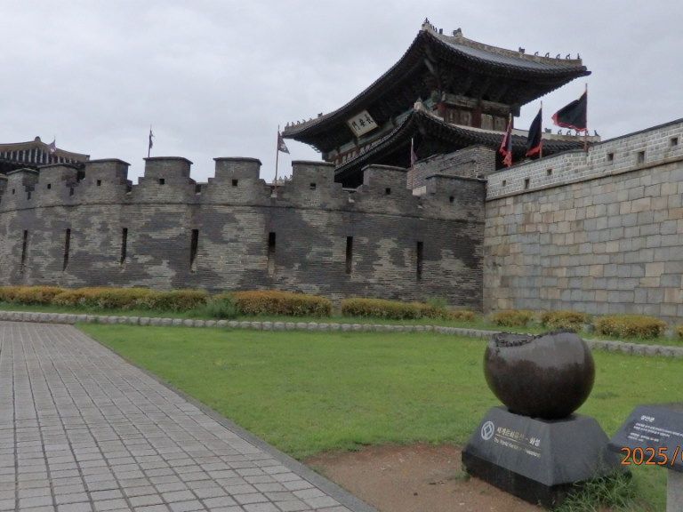 中でも水原華城は、こんな面白い城跡に巡り合える事もなかなか無いと思います。最初に、博物館(資料館)で水原華城の歴史について、次に城壁の内側を歩きながら、説明を受けました。城好きの私にとって、記憶に残る場所になりました。