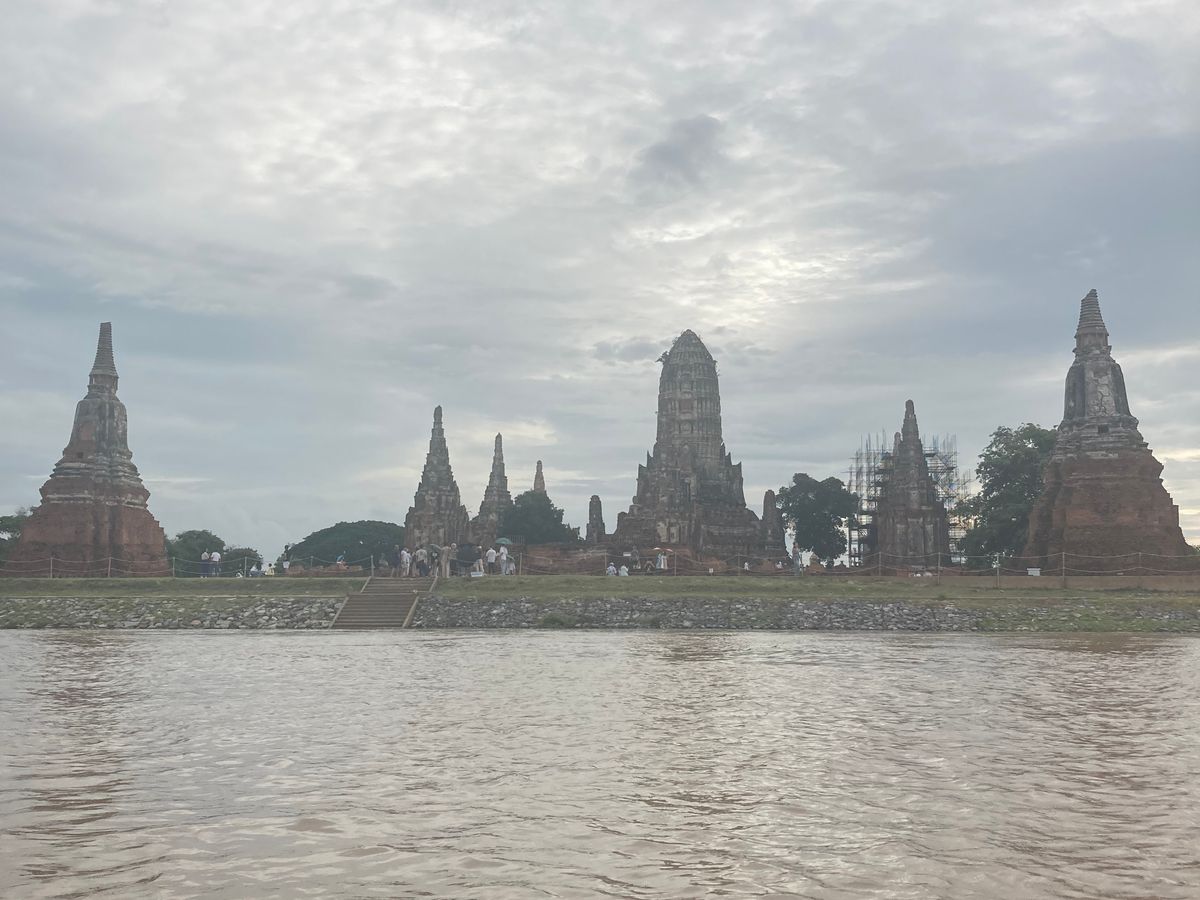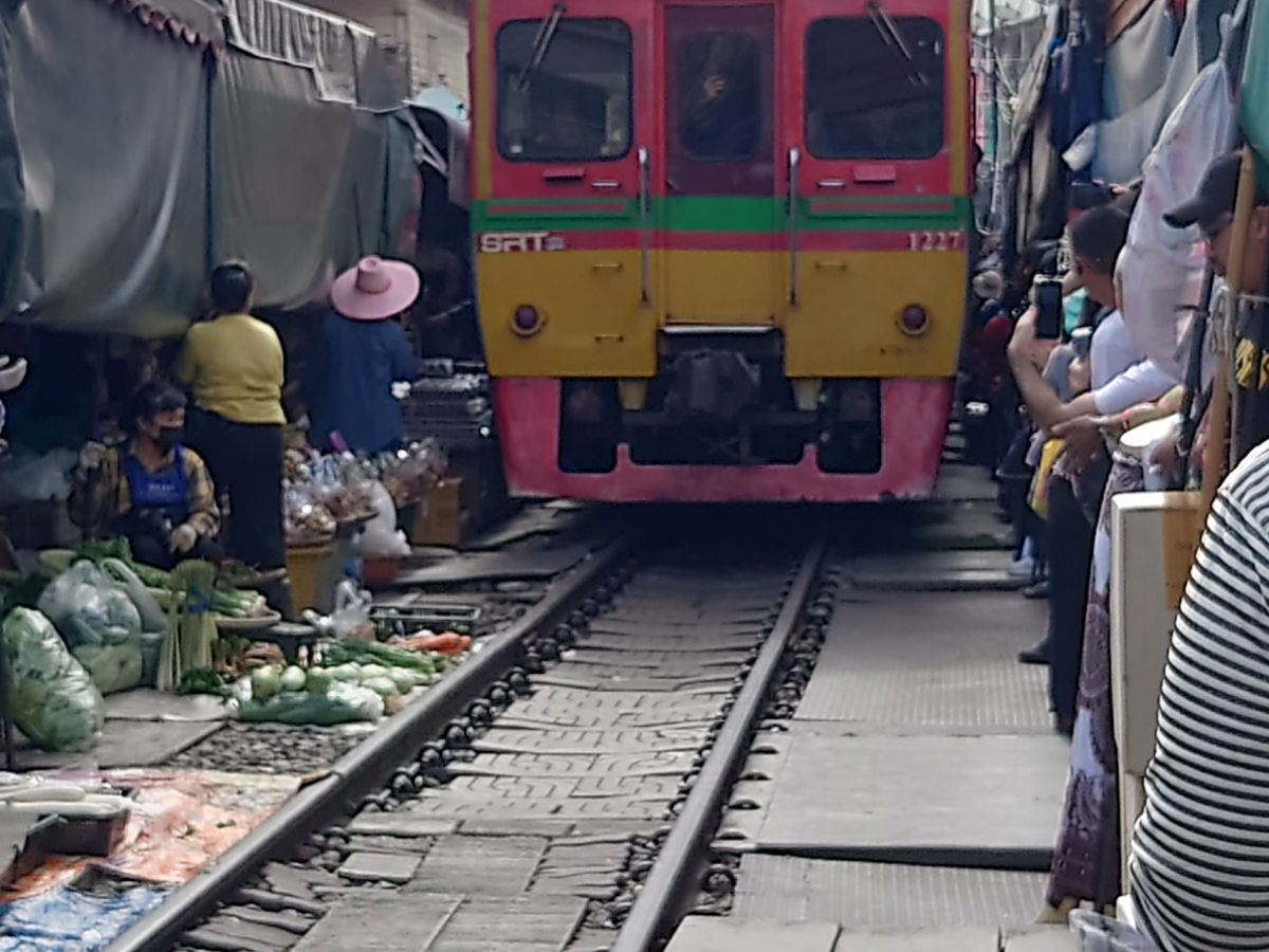 朝6時半にヒップアップでまずはメークロン市場へ。集合場所を案内してもらう間に見学しやすいカフェを物色。電車着20分前に線路前のカフェの最前列席を確保、5分前には満席。電車が目の前スレスレを通過するのと、海外の人とハイタッチしたり全世界の人が楽しそうにしているのが印象的。