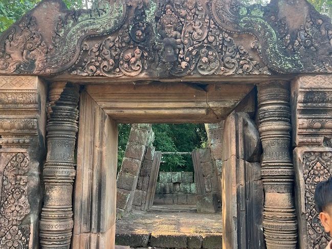 前日の夜から豪雨と雷雨に見舞われ、朝はきっとツアー中止かと思いきや、出発時には快晴となり、晴れて出発。ツアーガイドさんは移動の車中、非常に熱心にカンボジアの歴史を説明してくださり、常に丁寧な対応をしてくださいました。午前中プノンクーレンの滝や涅槃像のお寺の荘厳な眺めに感動。午後にはクバール、スピアンへ移動。前日の雨で川底の彫刻が見えず残念でしたが、清流わきで水浴びをする地元の家族やお参りをする現地の人々に紛れてお線香を備えたりと貴重な体験ができて良かったです。かなりの急勾配でしたが、ガイドさんが山道の途中に出くわすさまざまな植物や昆虫の説明をしてくださいました。心地よい風を感じつつ適切なペースで登ることができました。最後のバンテアイスレイについたのは夕日が傾くころ。観光客もまばらでとても静かな中、圧巻のながめでした。