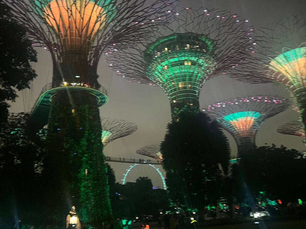 香ばしいクレイポッドライスのディナーからスタートし、シンガポールフライヤーで夜景を一望。ガーデンズ・バイ・ザ・ベイとマリーナ・ベイ・サンズのライトショーは幻想的で、夜のマーライオン公園も立ち寄れて大満足の夜でした