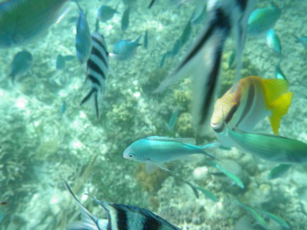 シュノーケルは途中の海洋保護区も魚が沢山いましたが、おすすめはランチに上陸した島の船着き場の下!魚がすごい大群で泳いでいました。ガイドにここでシュノーケルやりたいと伝えたら、帰る前に時間をとってくれました。