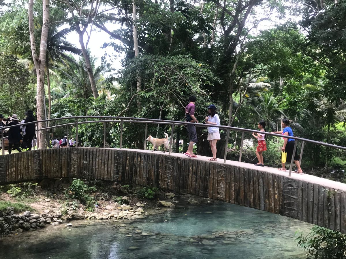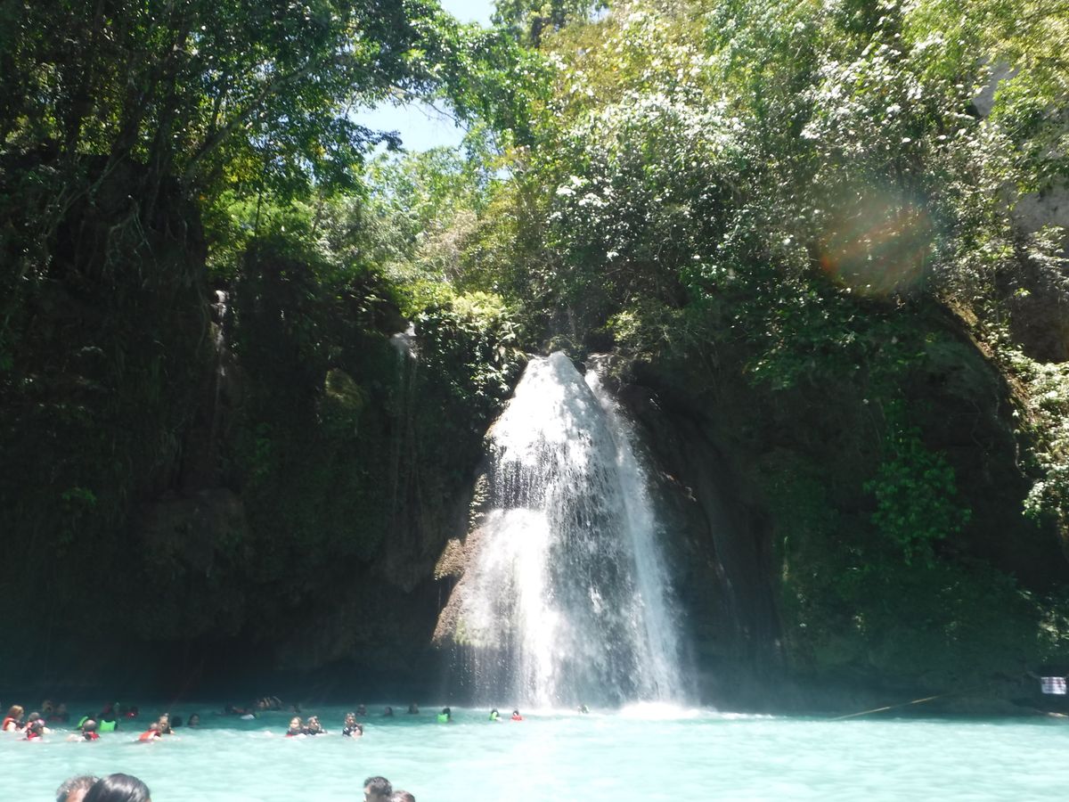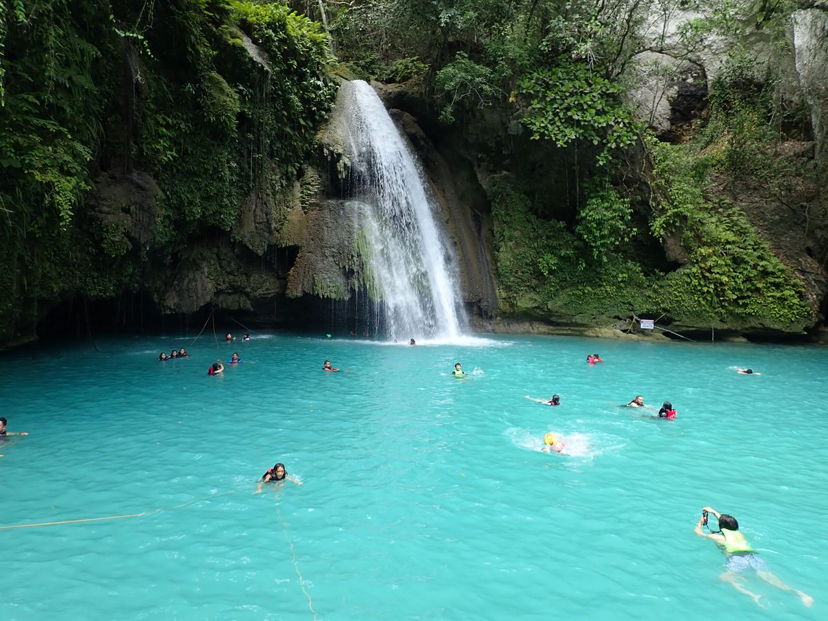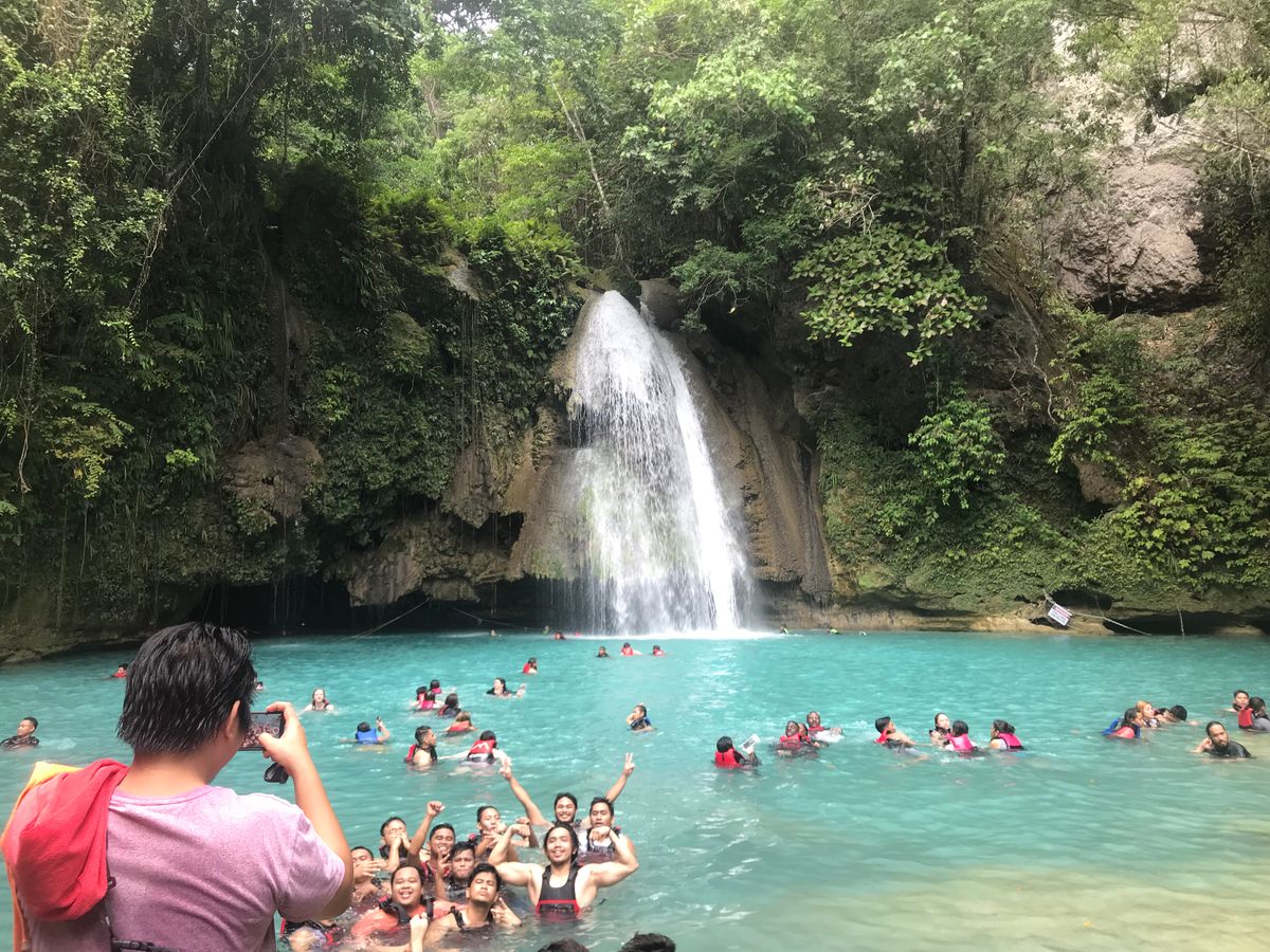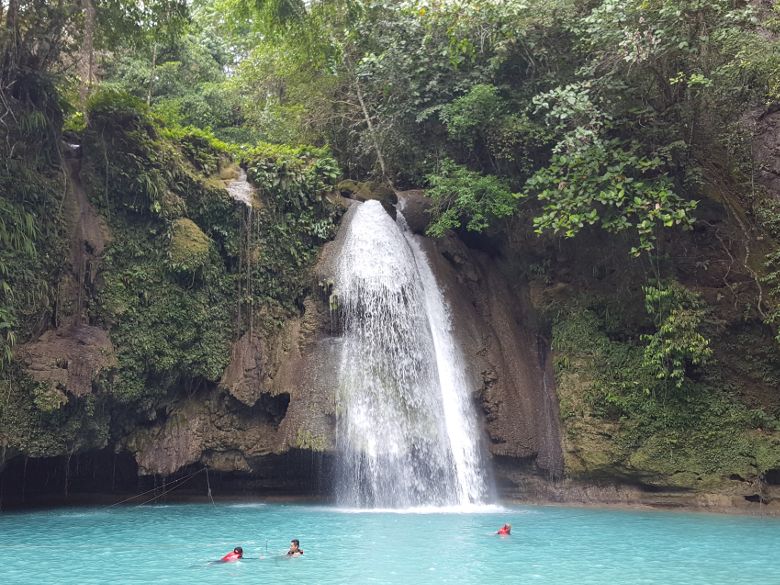 フィリピンの連休中だからか、滝つぼは現地の家族連れの方々で混みあっていました。自由時間は40分ほどで、滝つぼを泳ぐには十分の時間。