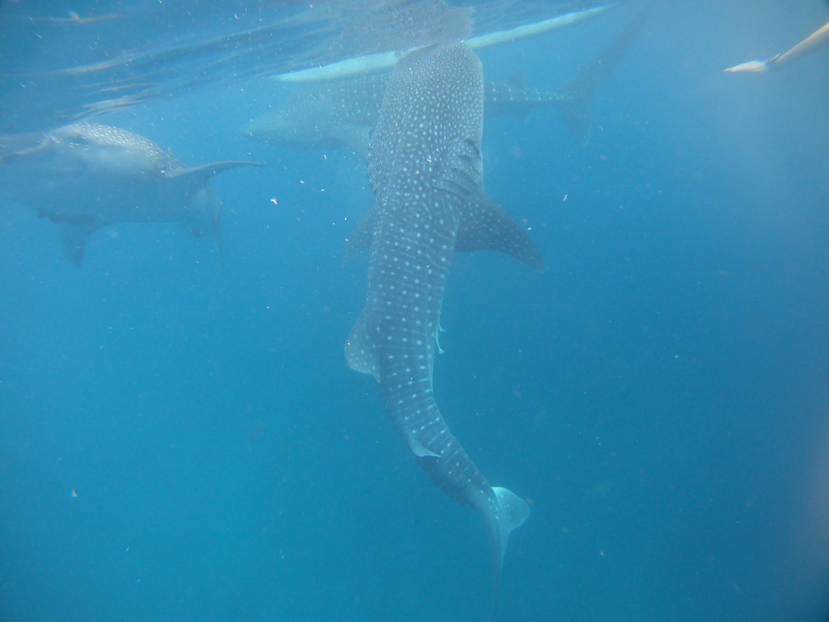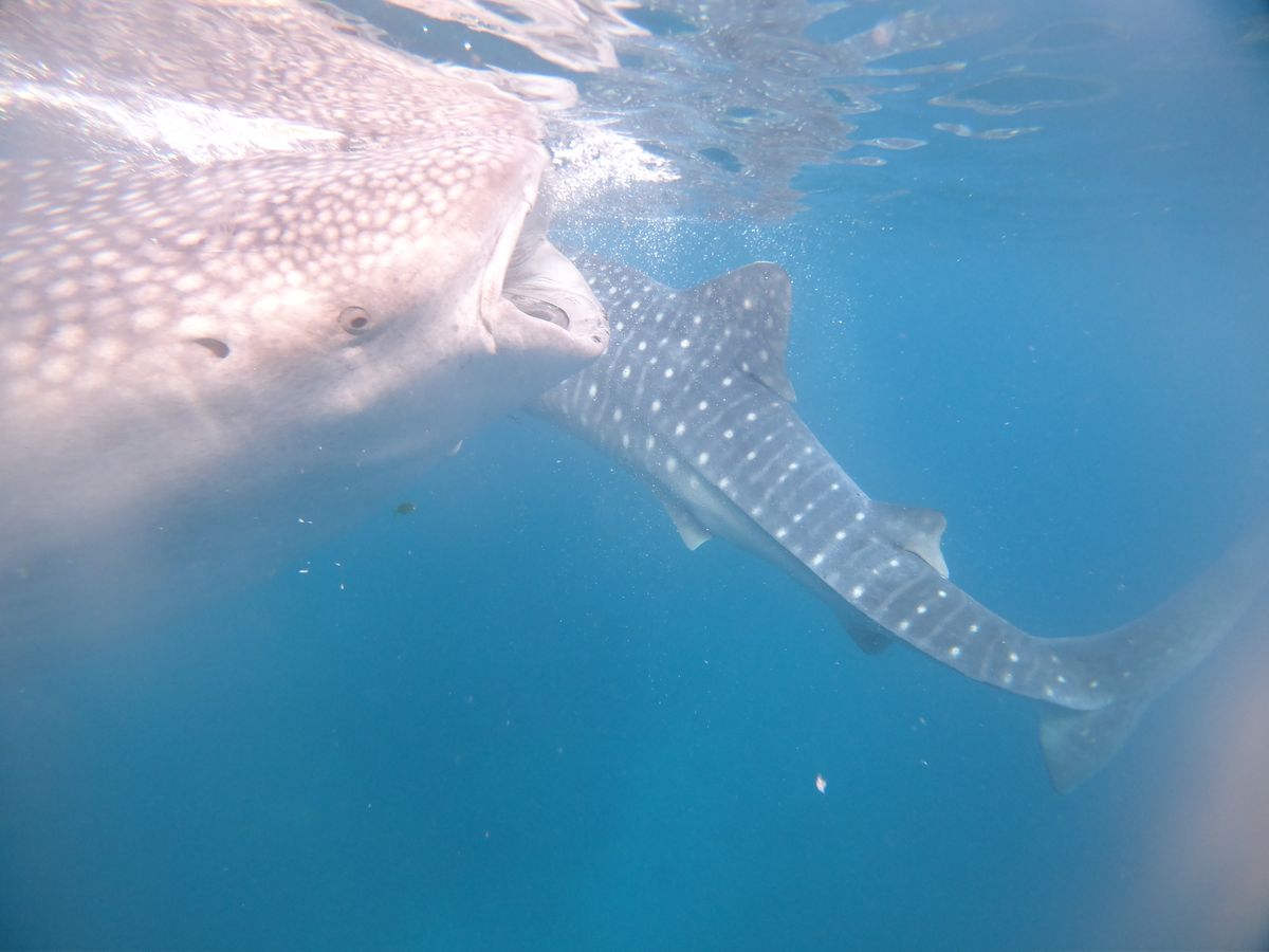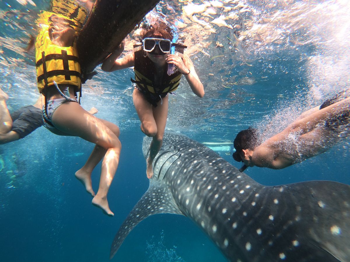 到着すると、想像以上に人が多い!今、とっても人気で、観光客が押し寄せているそうです。私たちも到着してから数時間待ちました。ただ、待ってる間もガイドさんたちと一緒に話していたので、退屈することはなかったです(^-^)いざ海へ潜ると、ジンベエザメは驚くほど近くで見ることができました!Goproは必須!!