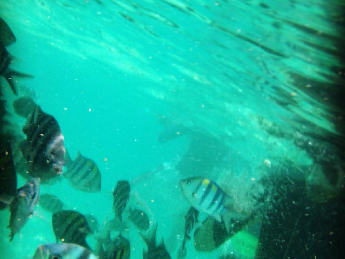 海に浮かびながら、目の前でパンをちぎると、魚群です。可愛らしい魚達が、集まります!是非にやってみて下さい!