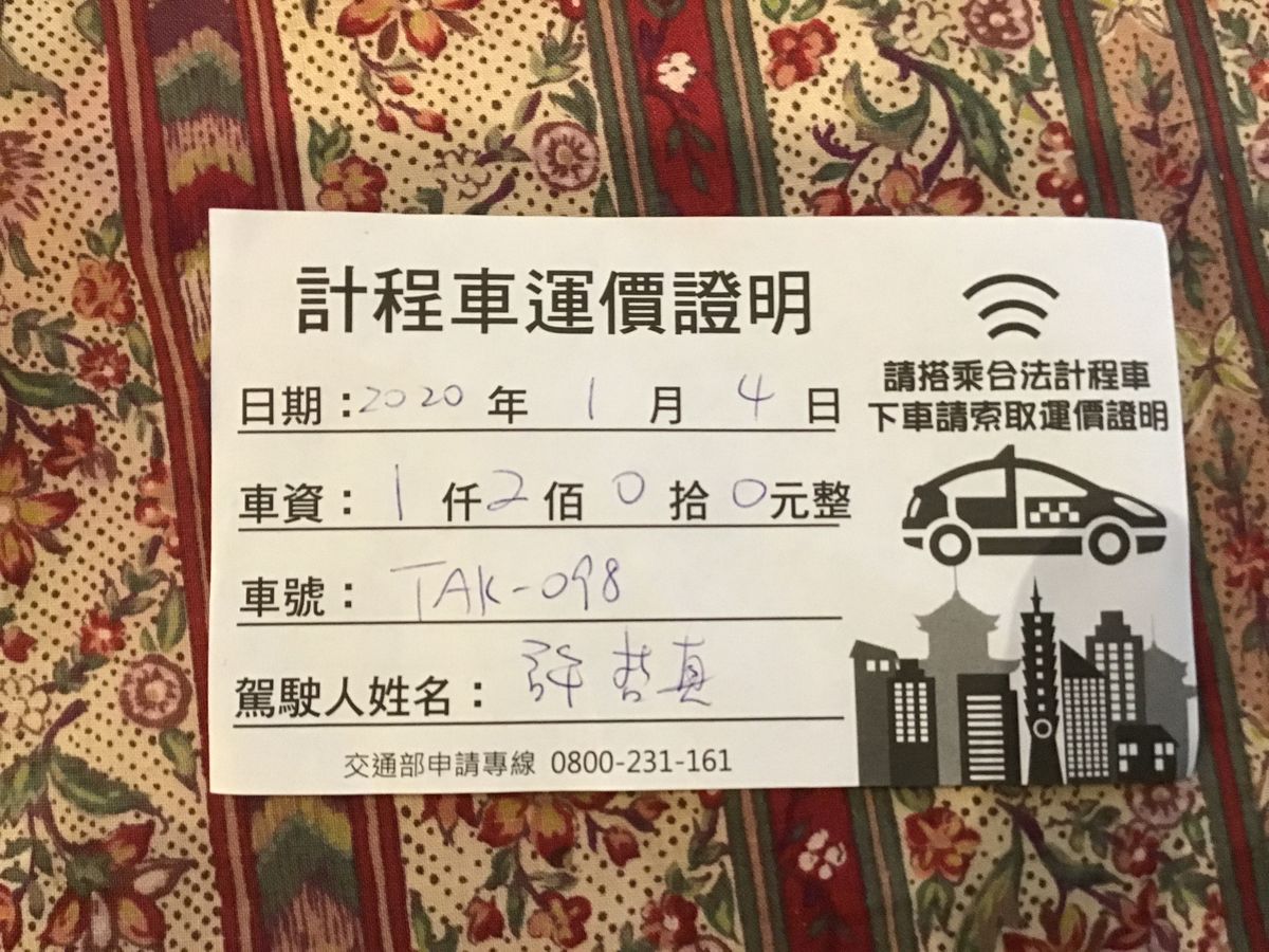 連絡した手配会社は、カードの料金引き落としはキャンセルします。桃園までのタクシー代1200元はふたんします、と言ってましたが、どのように請求すれば良いのでしょうか。タクシー領収書はもらいましたが、写真添付しておきます。