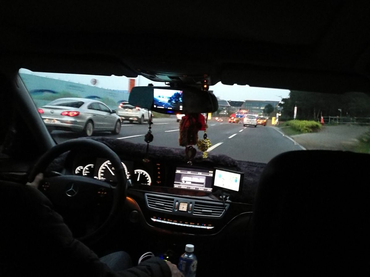 桃園空港で到着後、10分程度で出発。車内では翻訳アプリを使って