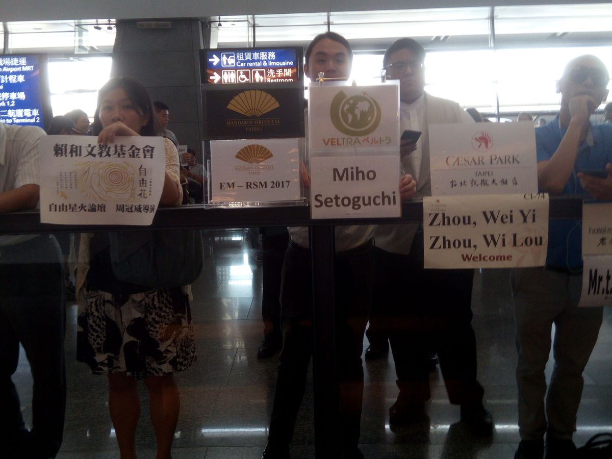 桃園国際空港へ到着後、ガイドさんが見やすいボードを持って待っていたので