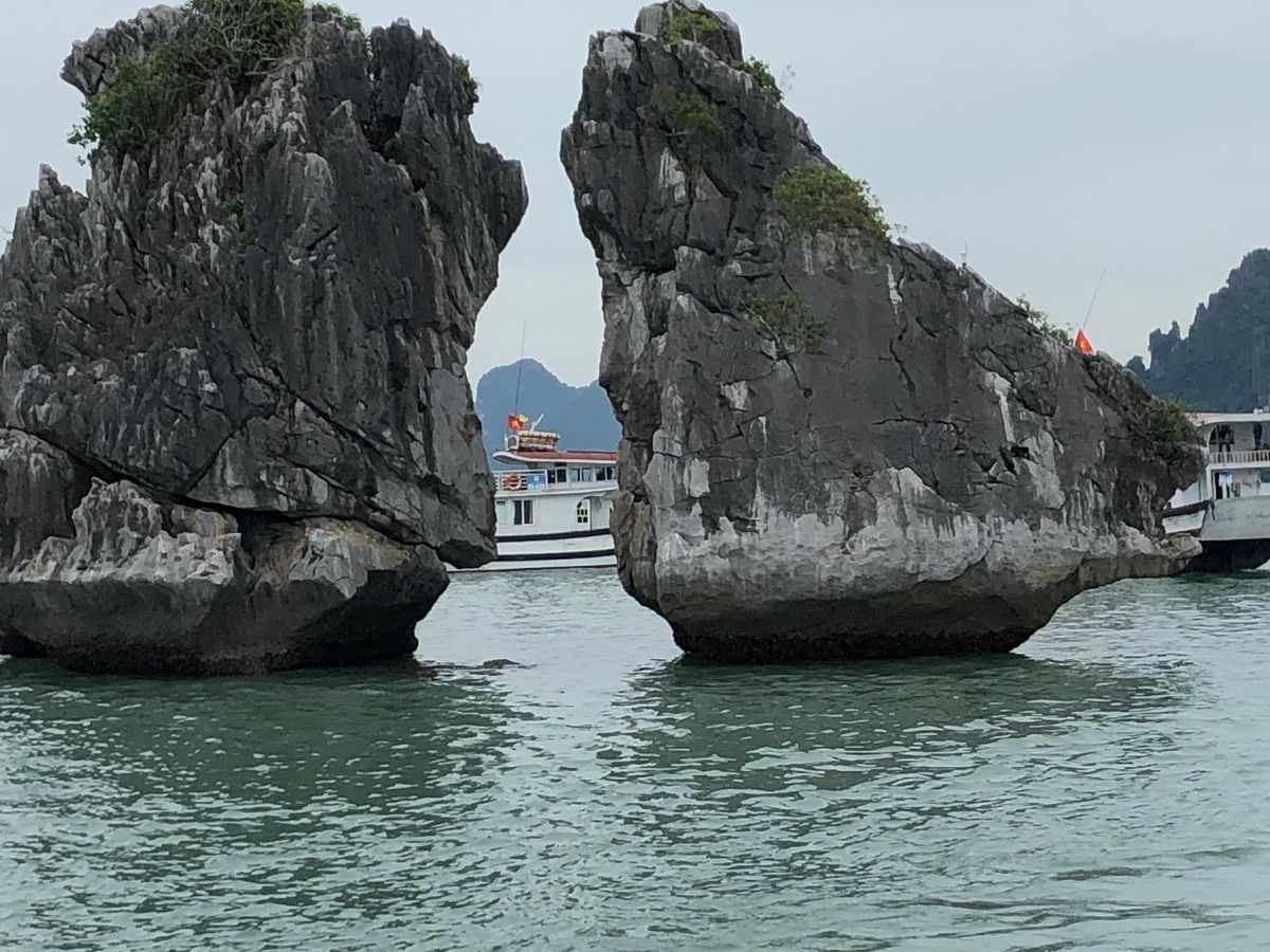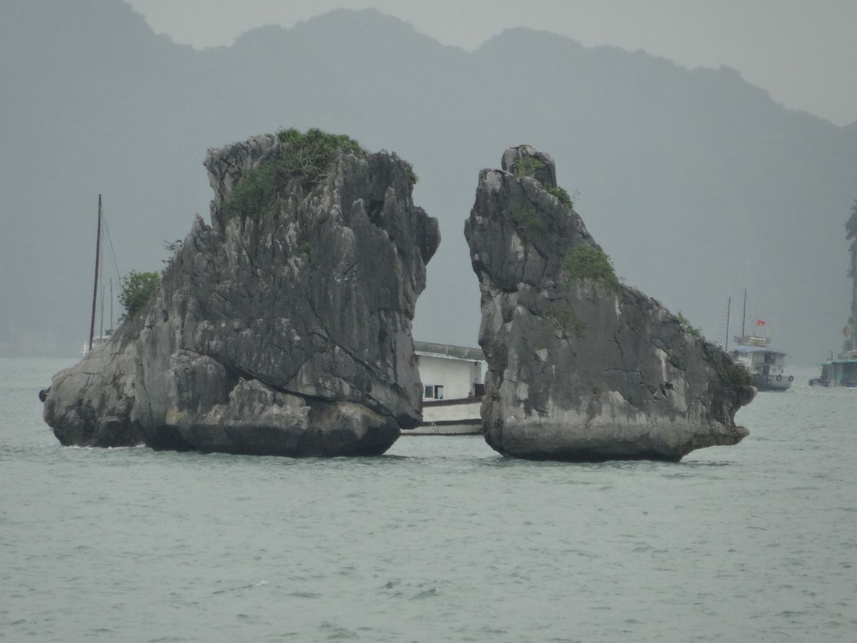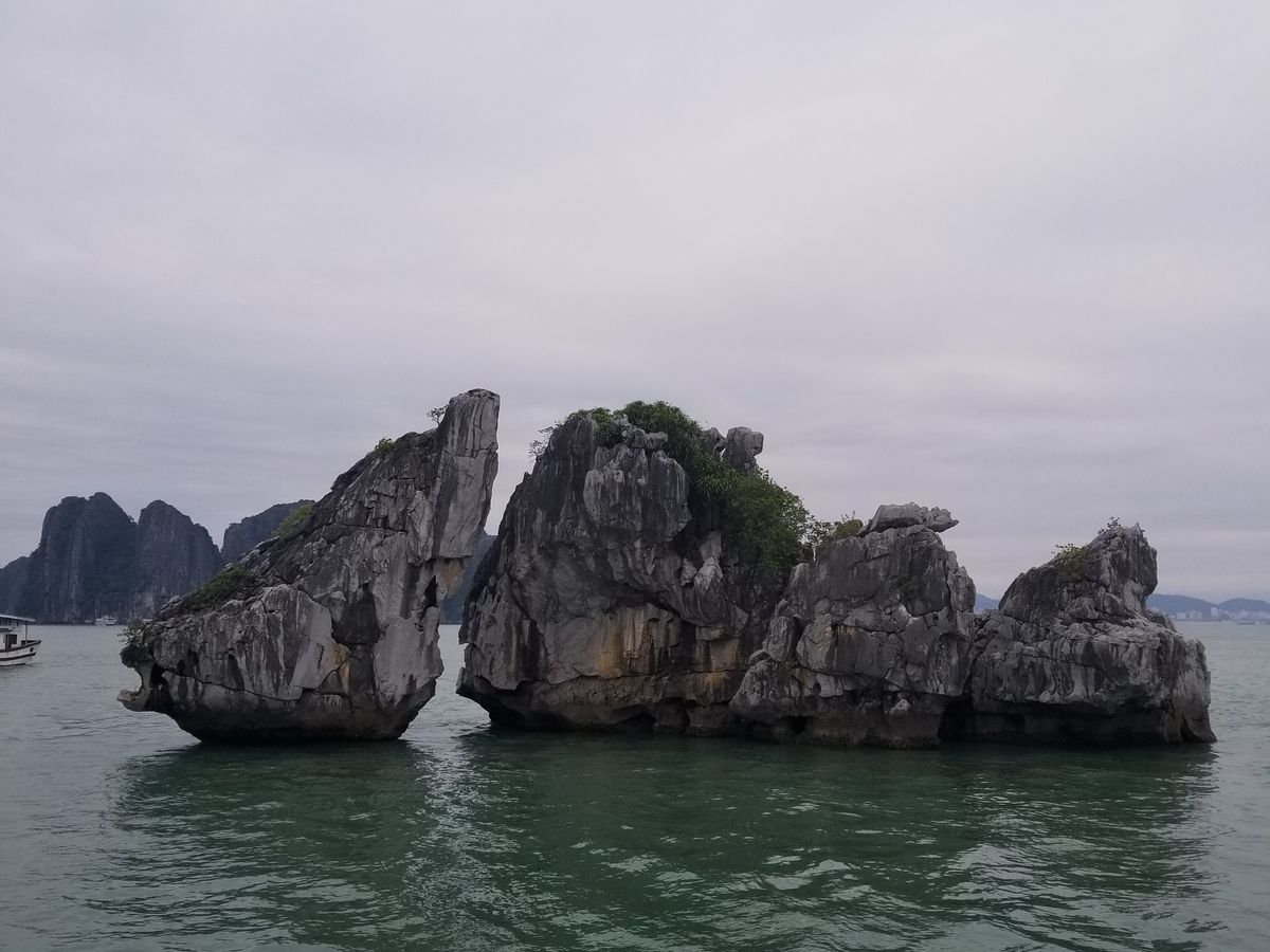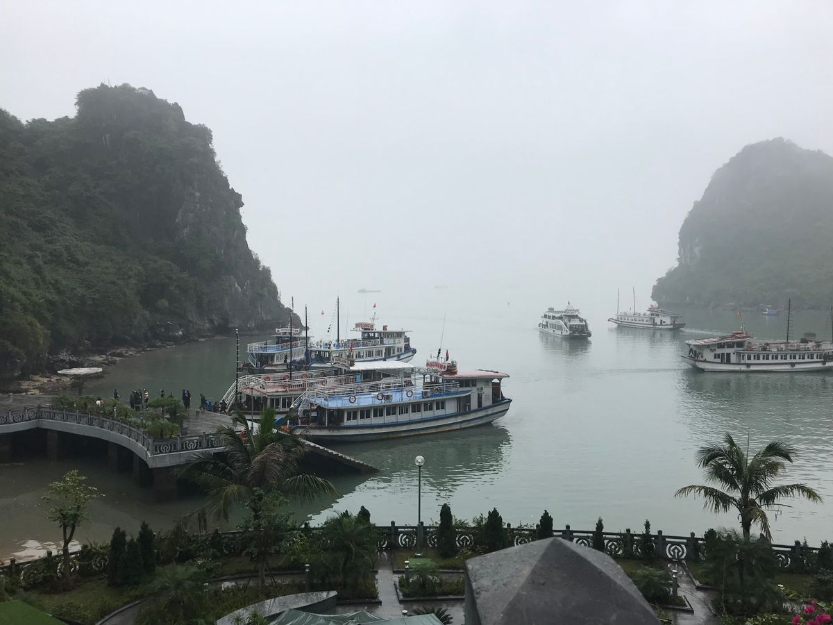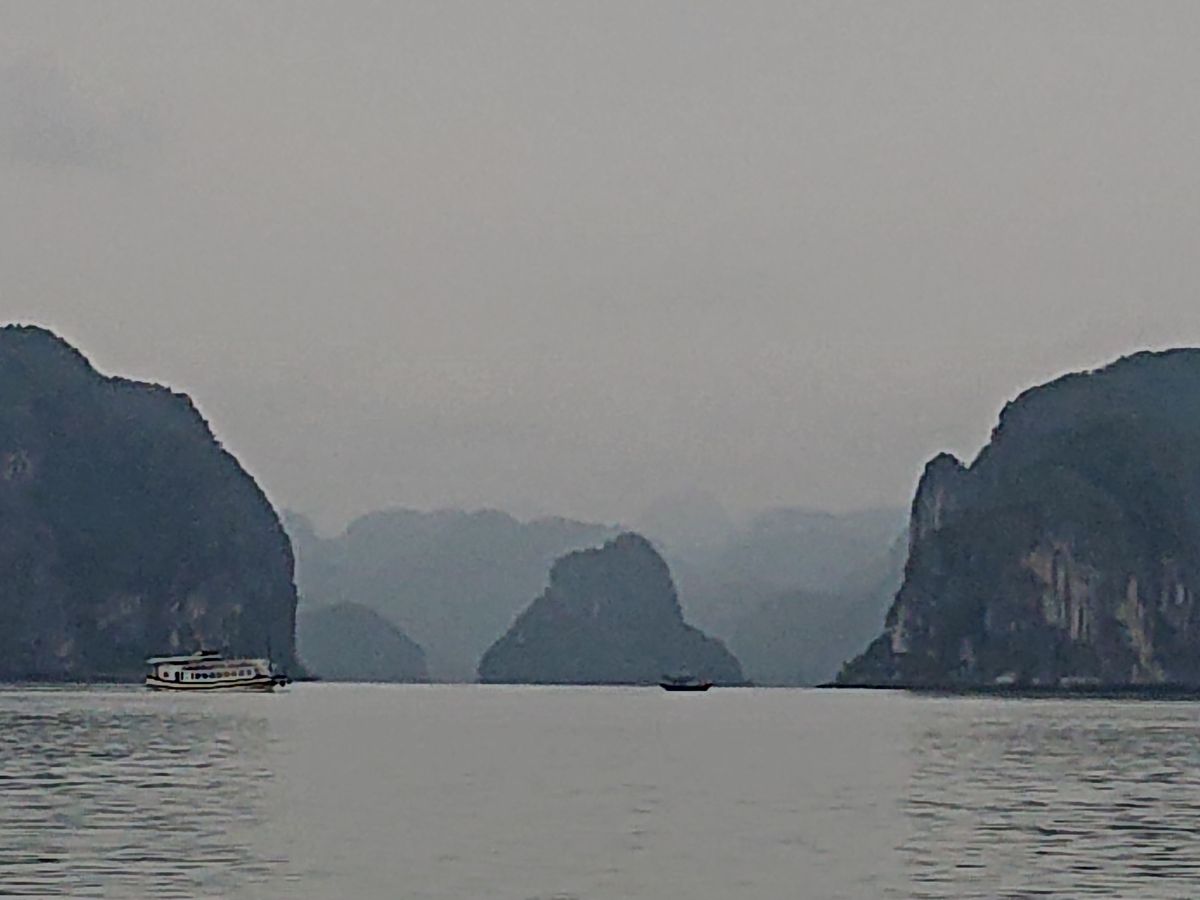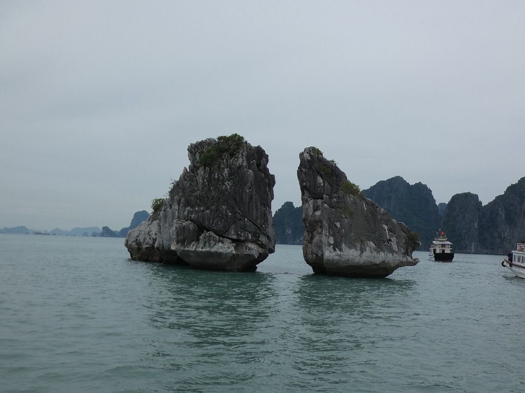 ずっと行きたいと楽しみにしていたハロン湾ですが、満足感が天候に大きく左右されます。小雨の降る中、寒く、カメラも濡れるという状況が残念でした。景色も寒々とした印象。往復の時間をかけて行く労力に釣り合うかどうかは、個人の考え方だと思います。一緒に参加した連れは、雨は雨で水墨画みたいできれい、とベトナム旅行中の中でこのハロン湾が一番印象に残ったと言っていました。