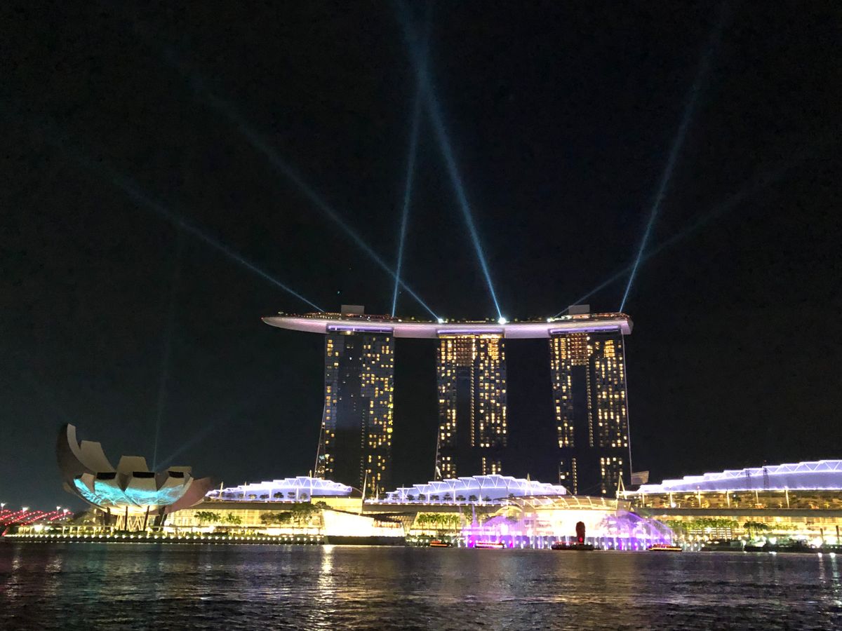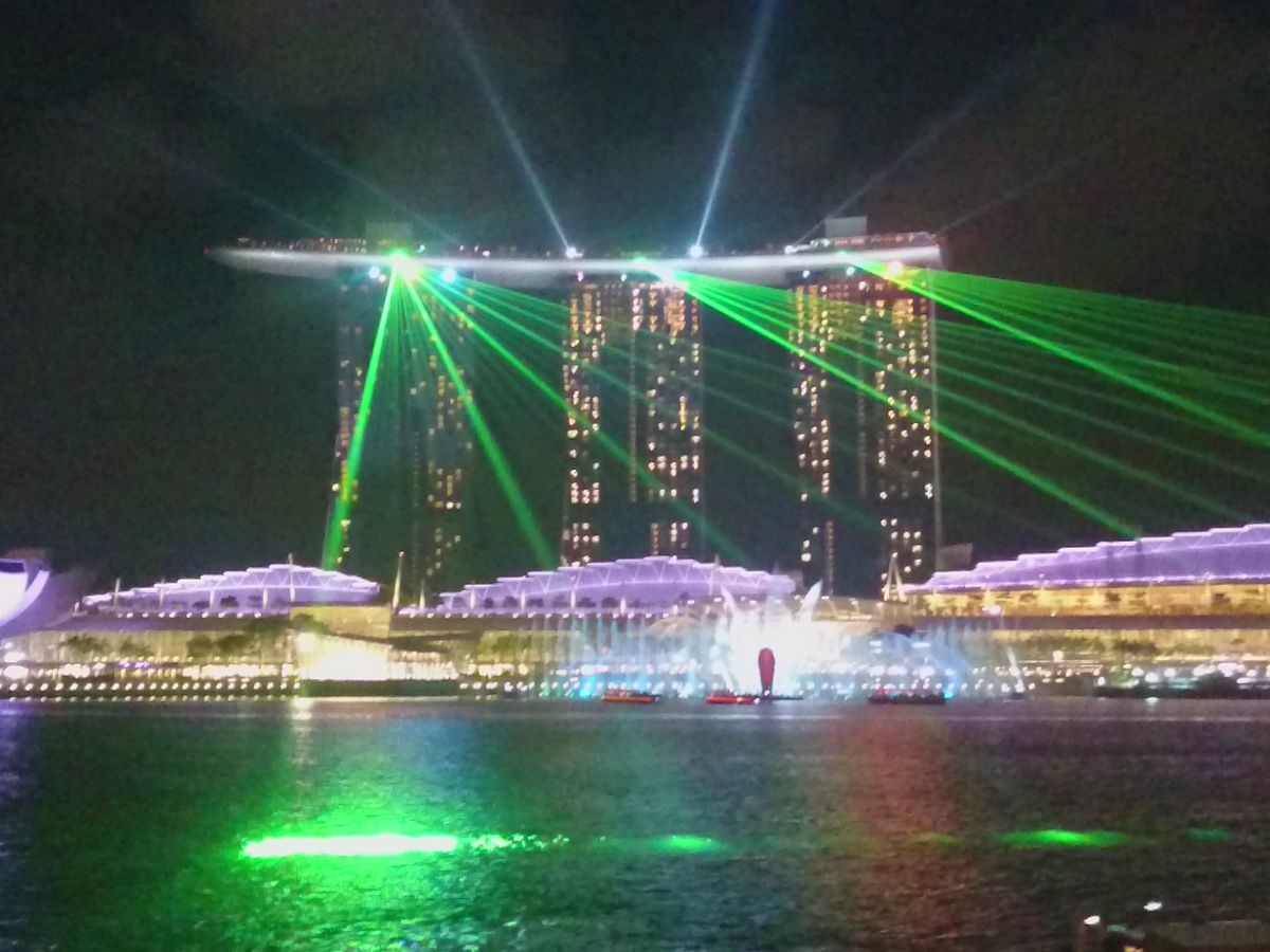マリーナベイサンズの光のショーはとても綺麗だった。