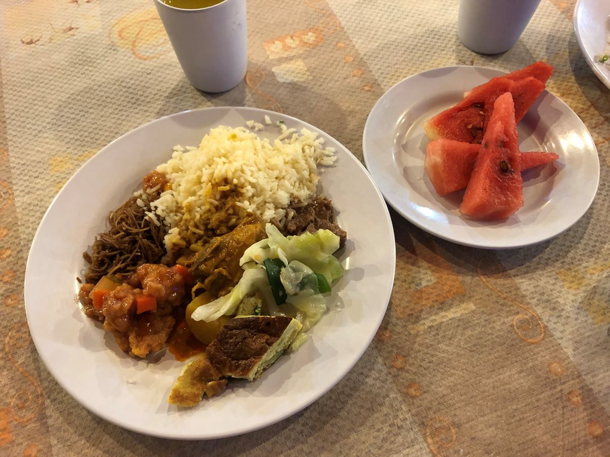 ランチは殻付きのエビ、春巻き、あさりの酒蒸し、野菜炒め、カニの甲羅に入ったすり身、ごはん、バナナ だったかな。料理はどれも温かくておいしかったです。あさりやエビでちょくちょく手が汚れるので、除菌シートを持っていった方が良いです。おしぼりは最初と最後に1枚ずつ渡されました。