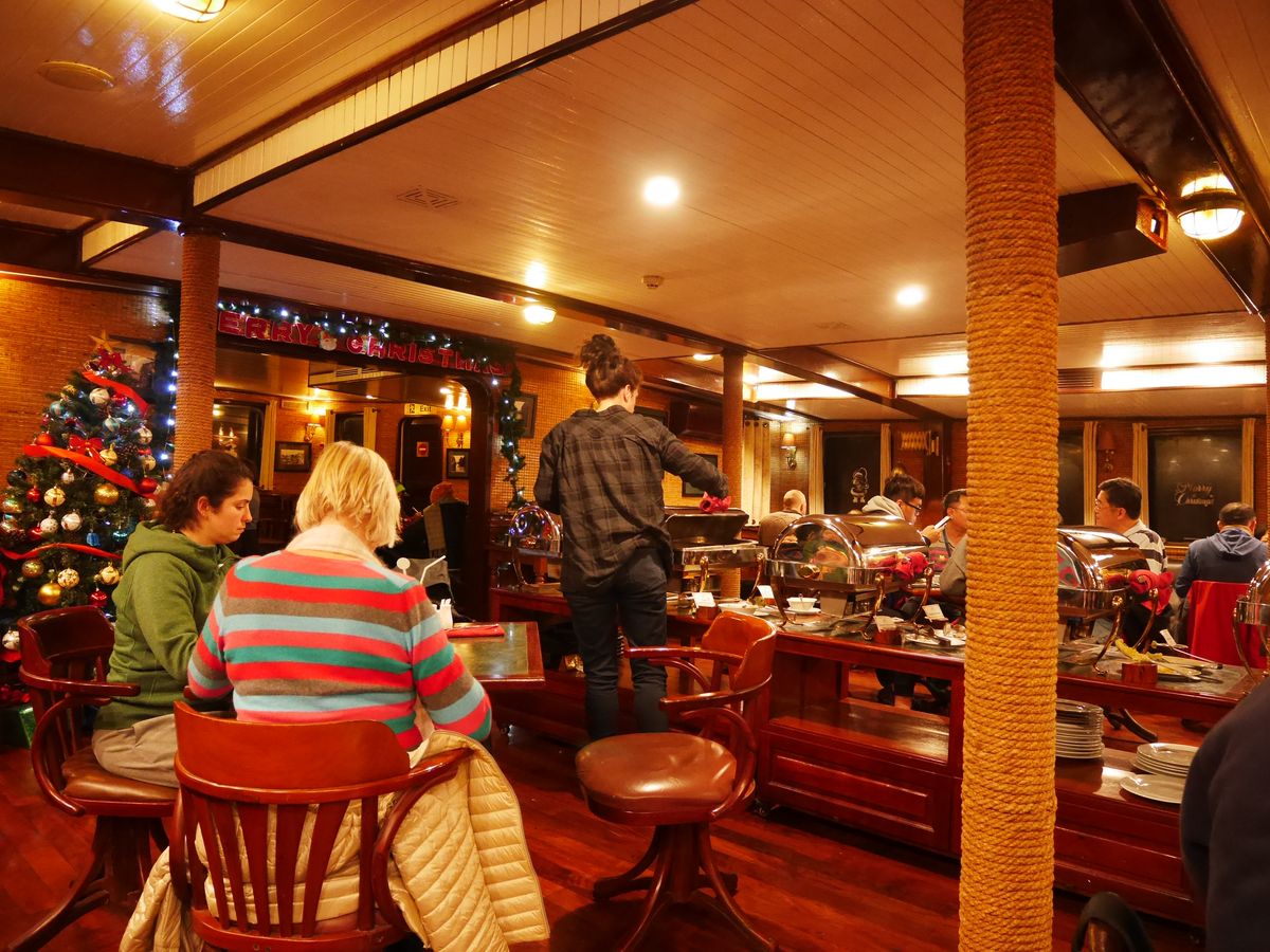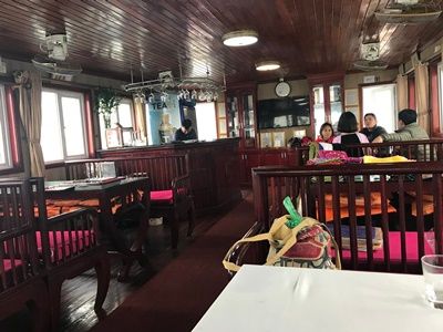 ランチの空き時間や食べ終わったあとに、船のデッキや2階部分に上がって、外を見たり写真を撮ったりできます。