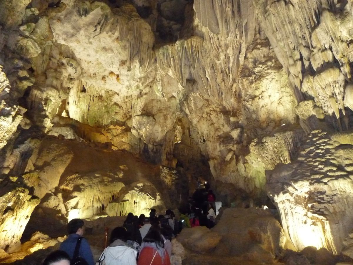 その後、鍾乳洞に。鍾乳洞はライトアップされ、圧巻のスケールでした。