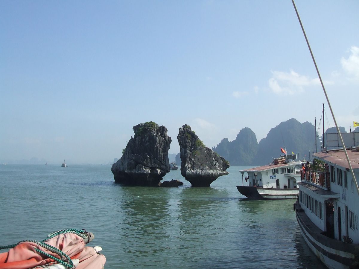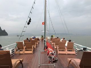 念願のハロン湾は、天候にもめぐまれとても素敵な風景でした。船も思ったよりゴージャスで快適に過ごせました。